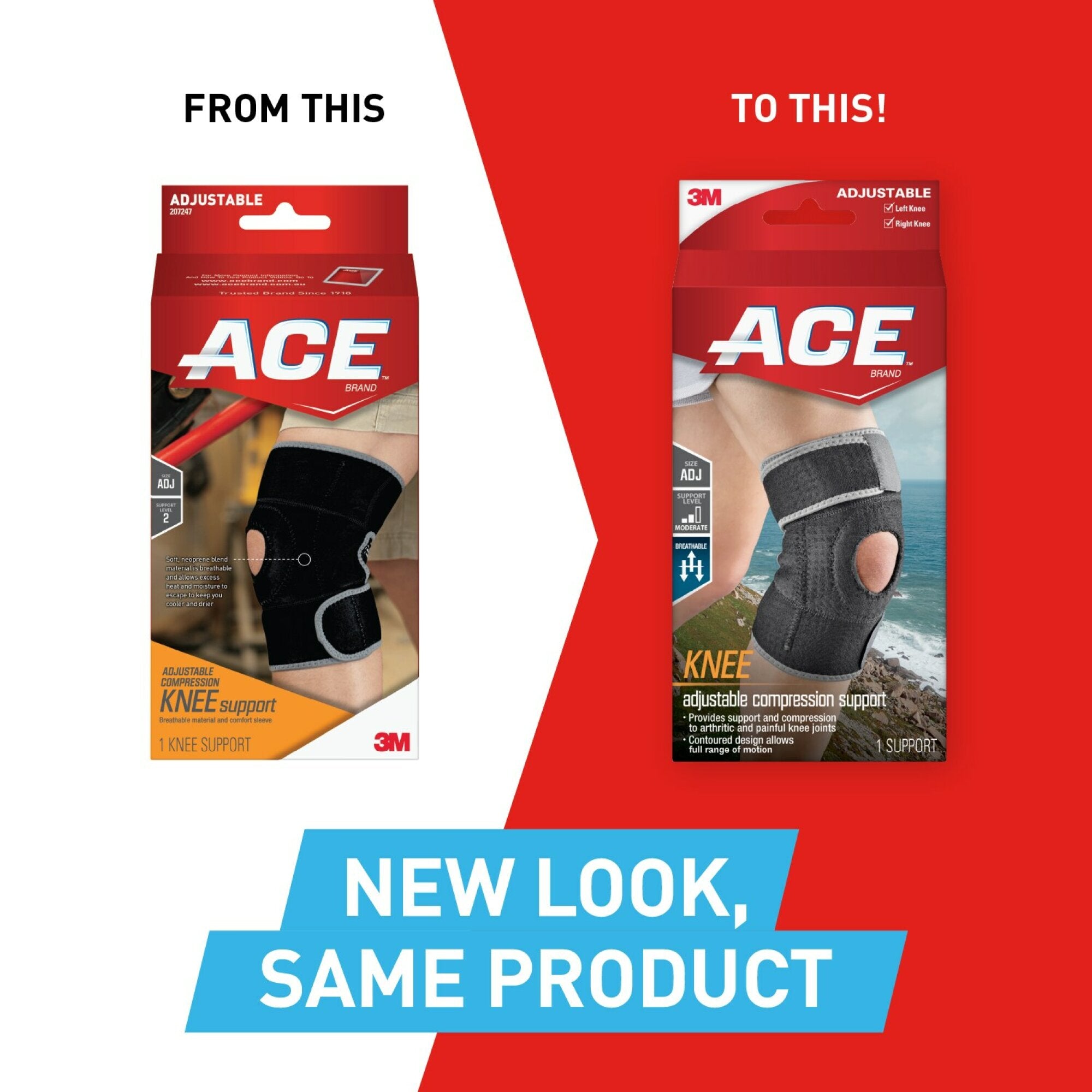 The ACE Brand consists of outstanding elastic bandages, braces, supports, and cold & hot therapy products to help you maintain your healthy active lifestyle.When your knees have something to say, they aren't shy about saying it. Keep doing what you love with the help of the ACE™ Adjustable Knee Support. Our knee brace provides comfortable compression to stiff, weak or sore muscles and injured knees. Designed to bring you customizable comfort, this knee stabilizer adjusts at two points. Wrap your knee in the supportive comfort of the ACE™ Adjustable Knee Support.