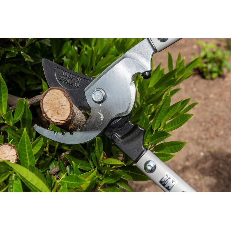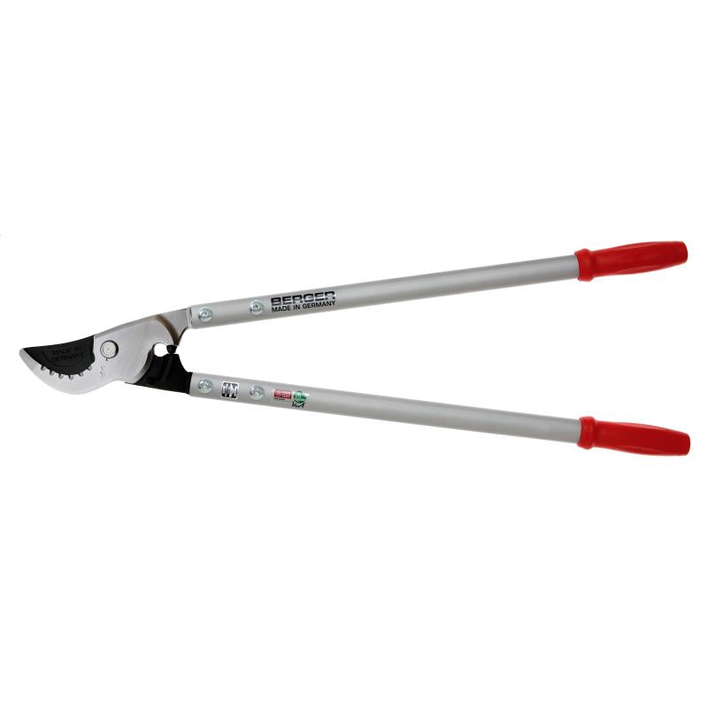 The Lopping Shears from BERGER are designed with comfort and safety in mind. This is a professional grade lopper that features high quality steel blades that are able to cut diameters of up to 2". The maximum 90° opening angle allows for optimal power transmission. The fixed notches on the counter blade keep the cutting material in place while working. This tool features strong aluminum handles with soft rubber grips; lightweight yet extremely durable.