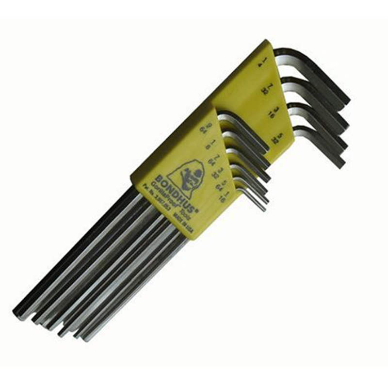 Bondhus 16138 Set of 10 Hex L-wrenches with BriteGuard Finish, Long Length, Sizes 1/16-1/4"