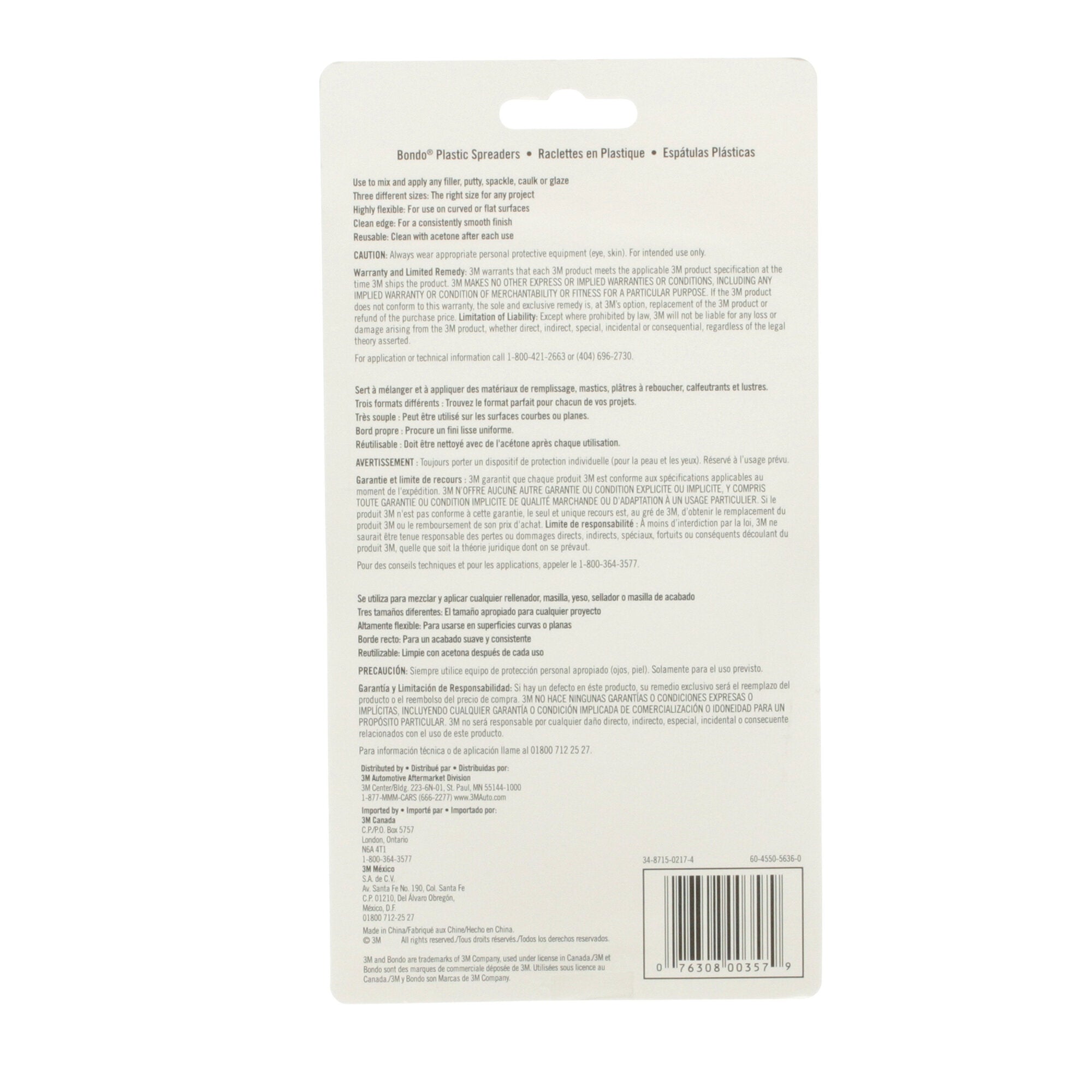 With three sizes in one pack, Bondo Spreader virtually assures you the right tool for mixing and applying filler, putty, spackle, caulk or glaze. Plastic spreaders are strong yet flexible, making them easy to hold and use even on curved or flat surfaces. The clean edge makes it easy to create a consistent, smooth finish. Spreaders are reusable and easily cleaned, saving time and money.With three sizes in one pack, our Bondo Spreader virtually assures you the right tool for mixing and applying filler, putty, spackle, caulk or glaze. Plastic spreaders are strong yet flexible, making them easy to hold and use even on curved or flat surfaces. The clean edge makes it easy to create a consistent, smooth finish. Spreaders are reusable and easily cleaned, saving time and money.