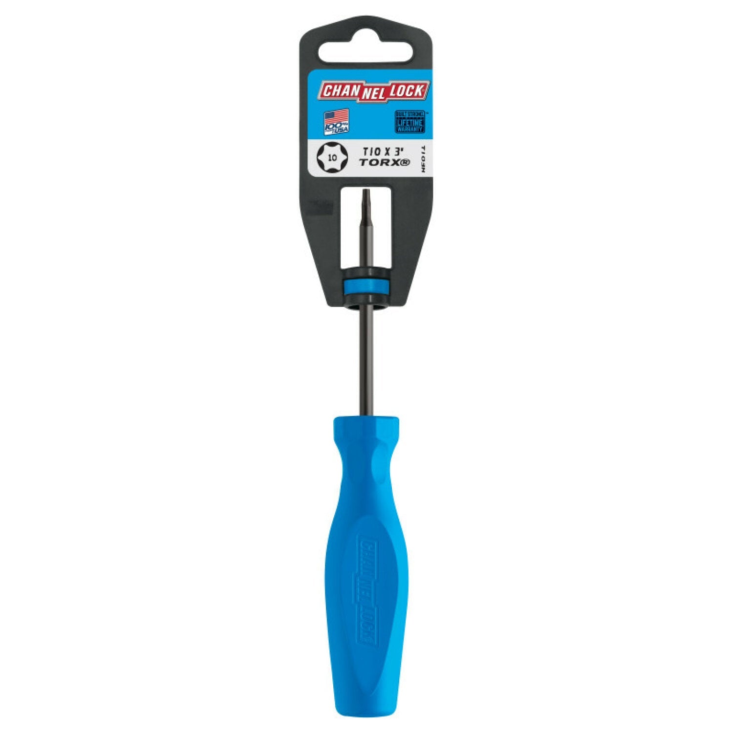 The CHANNELLOCK TORX T10 X 3-inch Professional Screwdriver offers advanced performance features to conquer the toughest jobs. Specifically designed to fit the needs of today’s trades professional, CHANNELLOCK® screwdrivers are equipped with precision-machined vacuum heat-treated tri-alloy steel blades for durability and have a non-porous, coated finish for lasting corrosion resistance. The high-torque, reinforced handles include a part indicator for easy identification, and tips are precision-machined for a proper fit on fasteners with superior control. Exceed the expectation with CHANNELLOCK® Professional Drivers made in the USA.