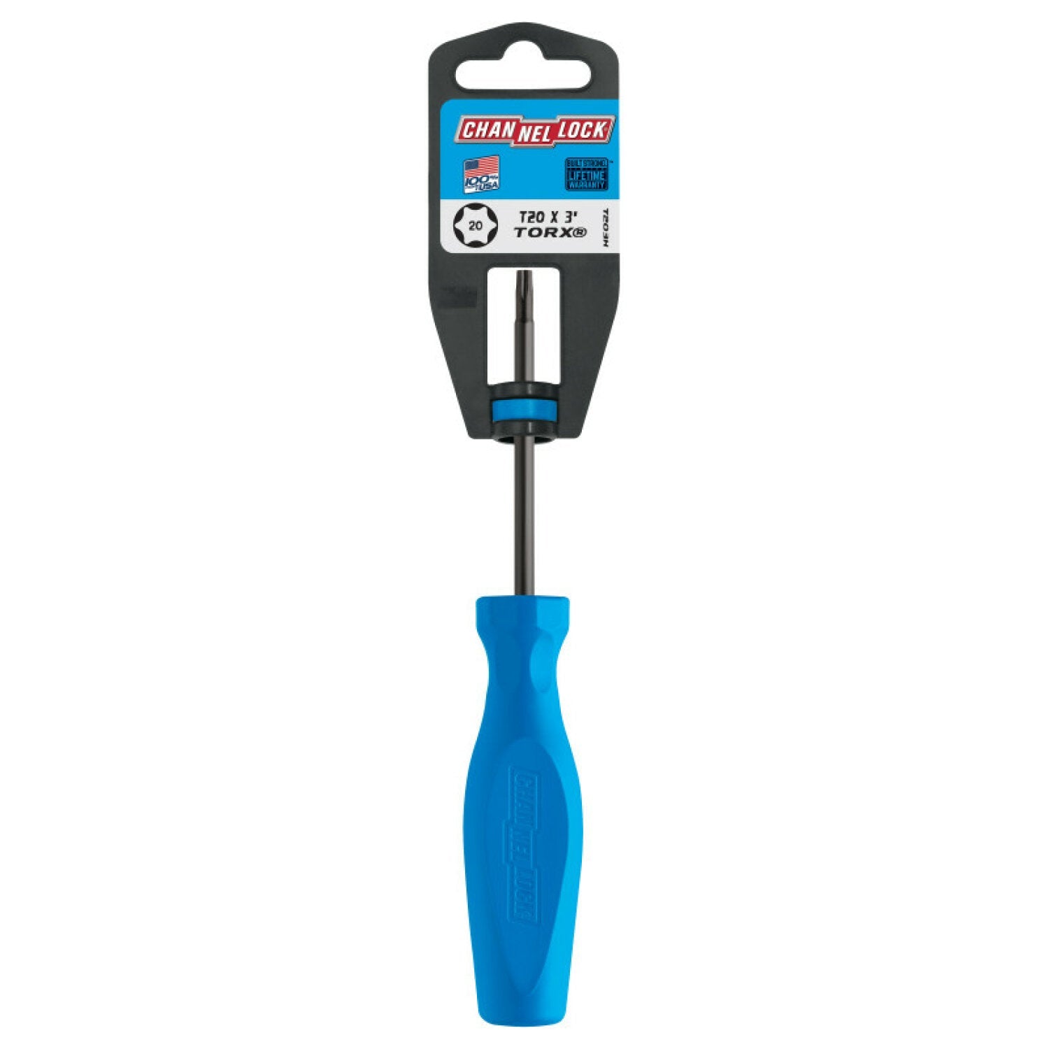 The CHANNELLOCK TORX T20 X 3-inch Professional Screwdriver offers advanced performance features to conquer the toughest jobs. Specifically designed to fit the needs of today’s trades professional, CHANNELLOCK® screwdrivers are equipped with precision-machined vacuum heat-treated tri-alloy steel blades for durability and have a non-porous, coated finish for lasting corrosion resistance. The high-torque, reinforced handles include a part indicator for easy identification, and tips are precision-machined for a proper fit on fasteners with superior control. Exceed the expectation with CHANNELLOCK Professional Drivers made in the USA.