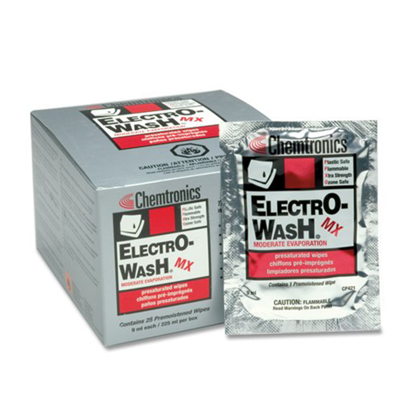 Chemtronics CP421 Electro-Wash & Degreaser Saturated Cleaning Wipes, 25 Per Box