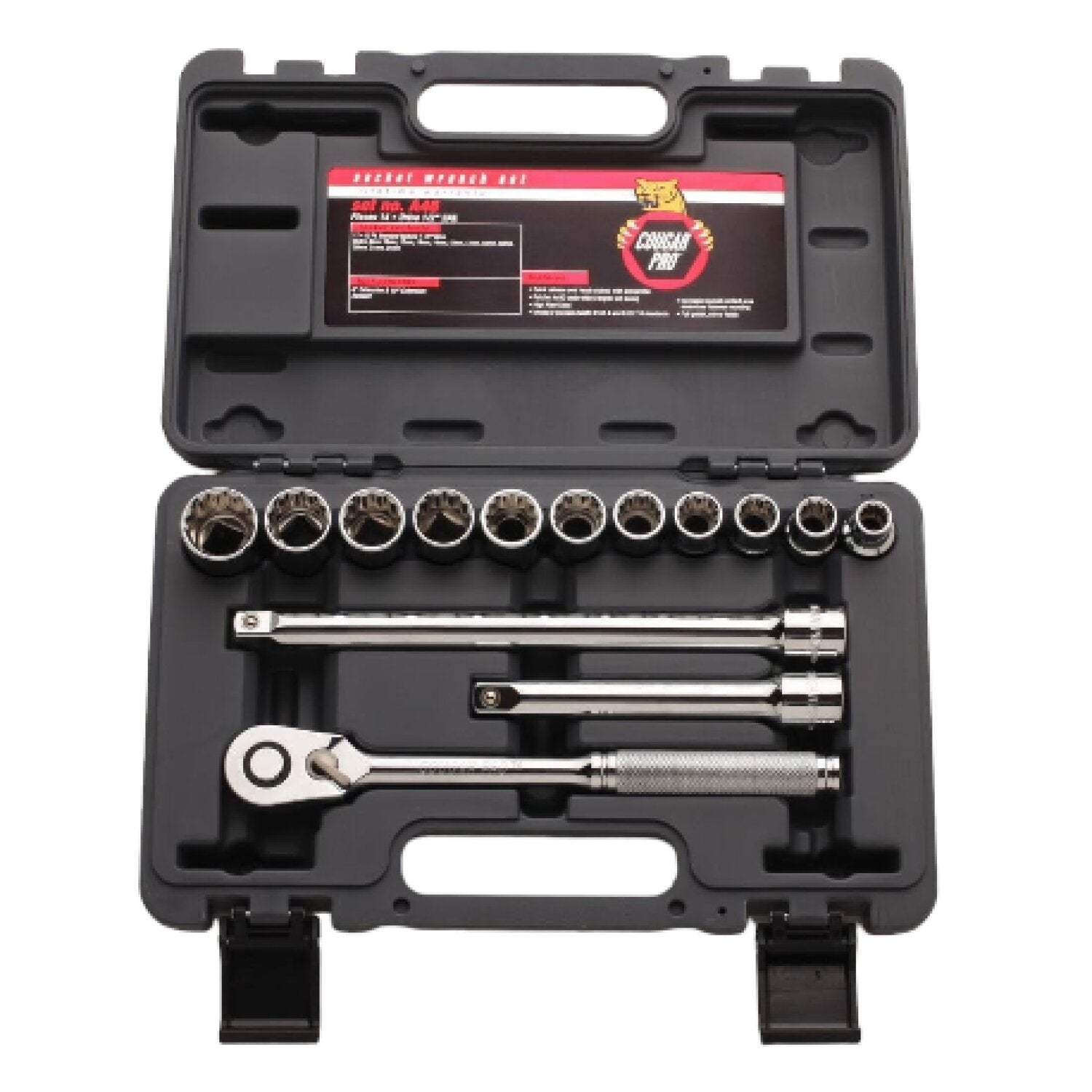 Cougar Pro A46 1/2" Drive 12 Point Standard Hand Socket Set 14 Piece