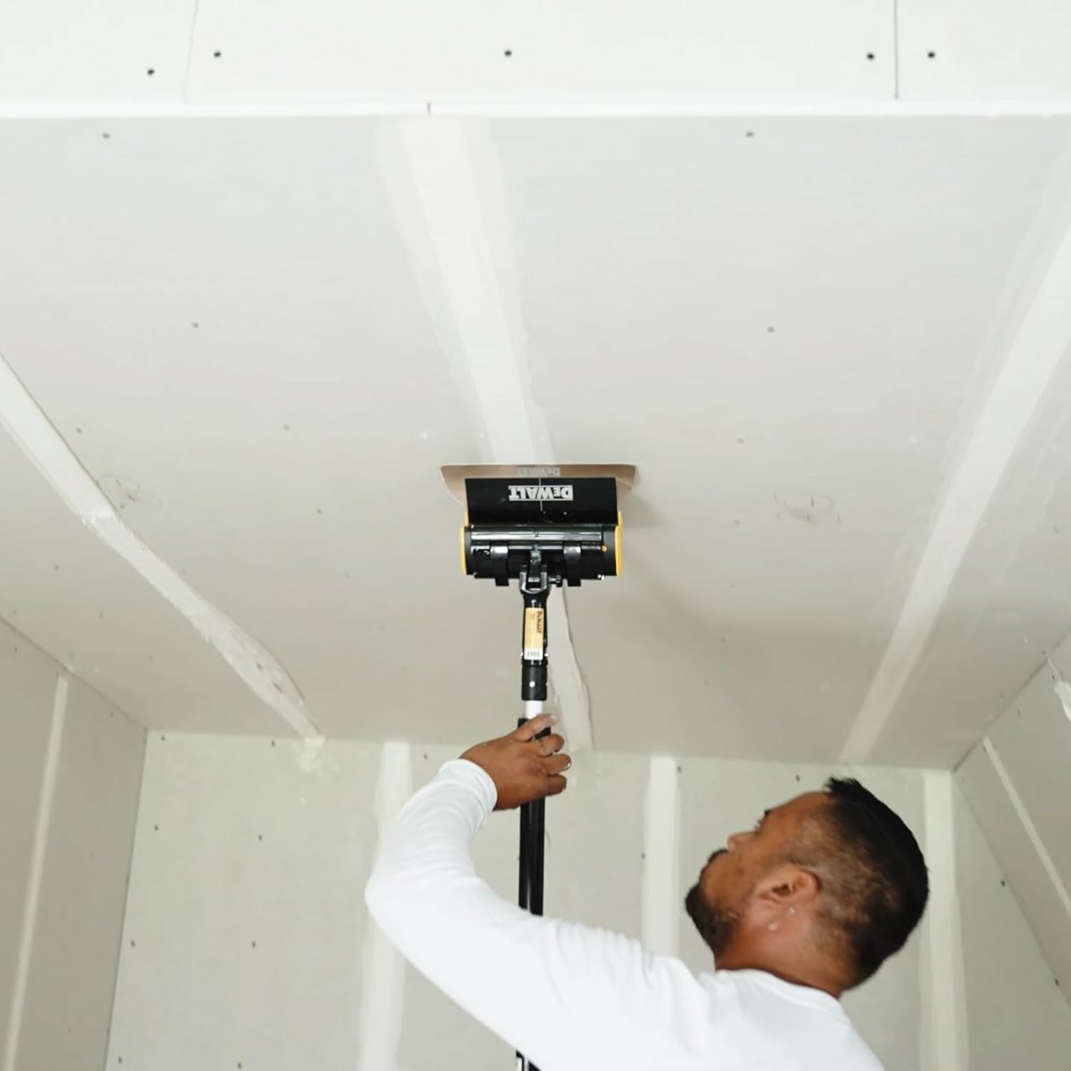 LIGHTWEIGHT EXTENDABLE HANDLES - The blade profile also accepts a handle adapter, enabling DEWALT extendable skimming blade poles to be affixed for work on high walls and ceilings