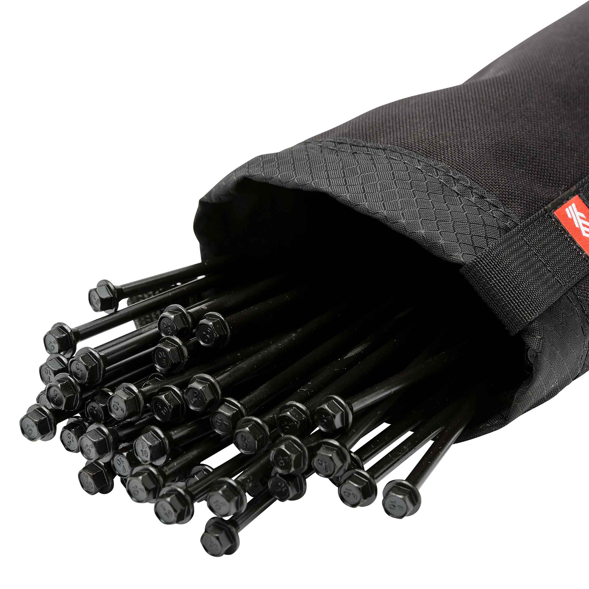 Introducing the DB Quiver. The perfect way to carry structural screws, oak framing pegs, torpedo levels, foam/caulk guns, Cedar shims, drywall router, wire ties, or welding rods. It can even hold a water bottle.Cinch the opening to keep items from falling out and easily store the DB Quiver using the integrated D-ring when it is not clipped on your belt, pouches or vest.