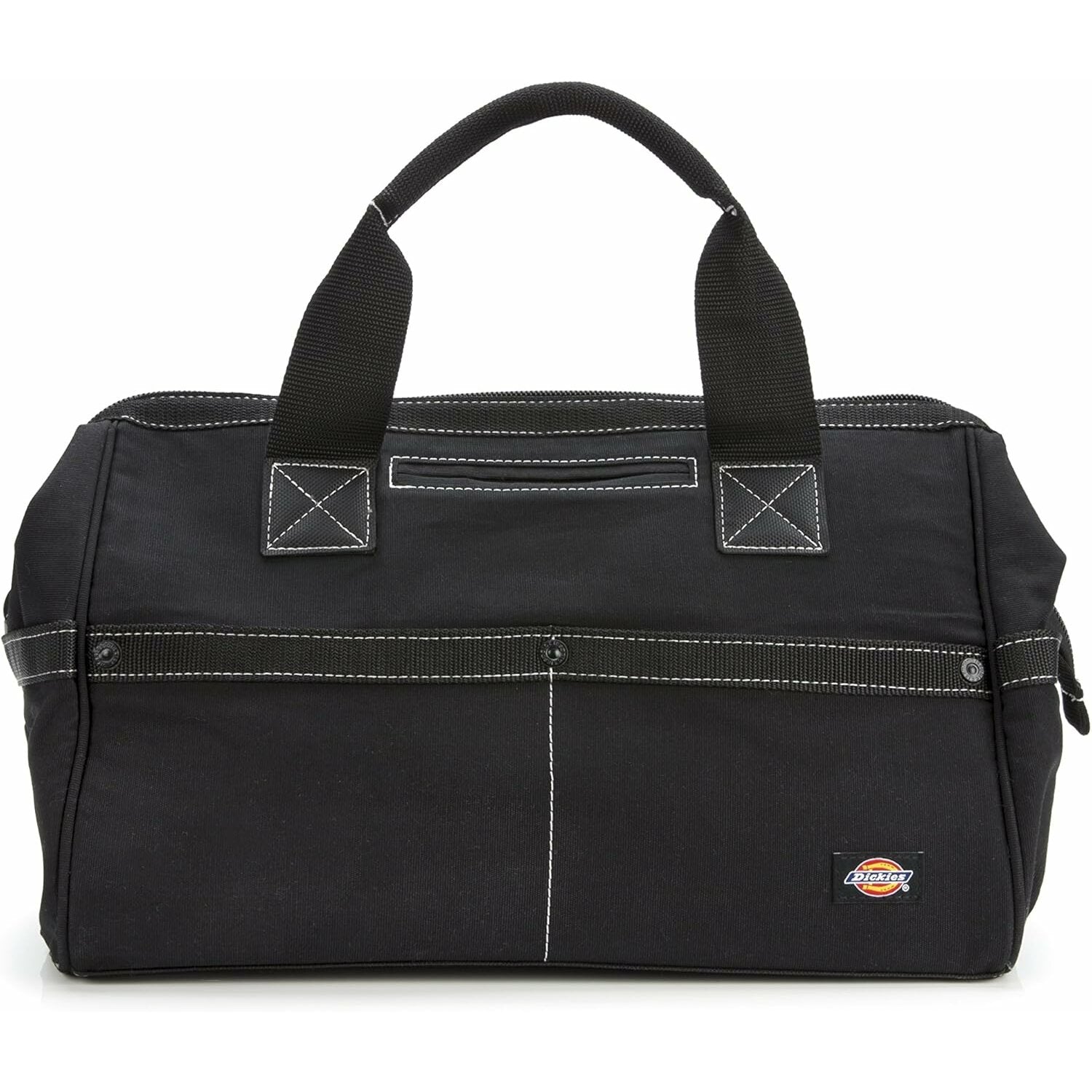 When you put the Dickies Work Gear 57085 16-Inch Work Bag to the test, you'll never be disappointed with the results! Constructed of durable black canvas, this tool/work bag features a large main compartment for easy access to your tools, accessories and can hold a variety of supplies. On the exterior, there are 6 webbing and rivet reinforced pouch pockets and a smaller accessory slip pocket. Durable piping along the seams allows the bag to handle more wear and tear from normal use. The heavy-duty zipper closure secures your tools in place when you're ready to pack up, and padding lined stitched handles provides for comfort when transporting.