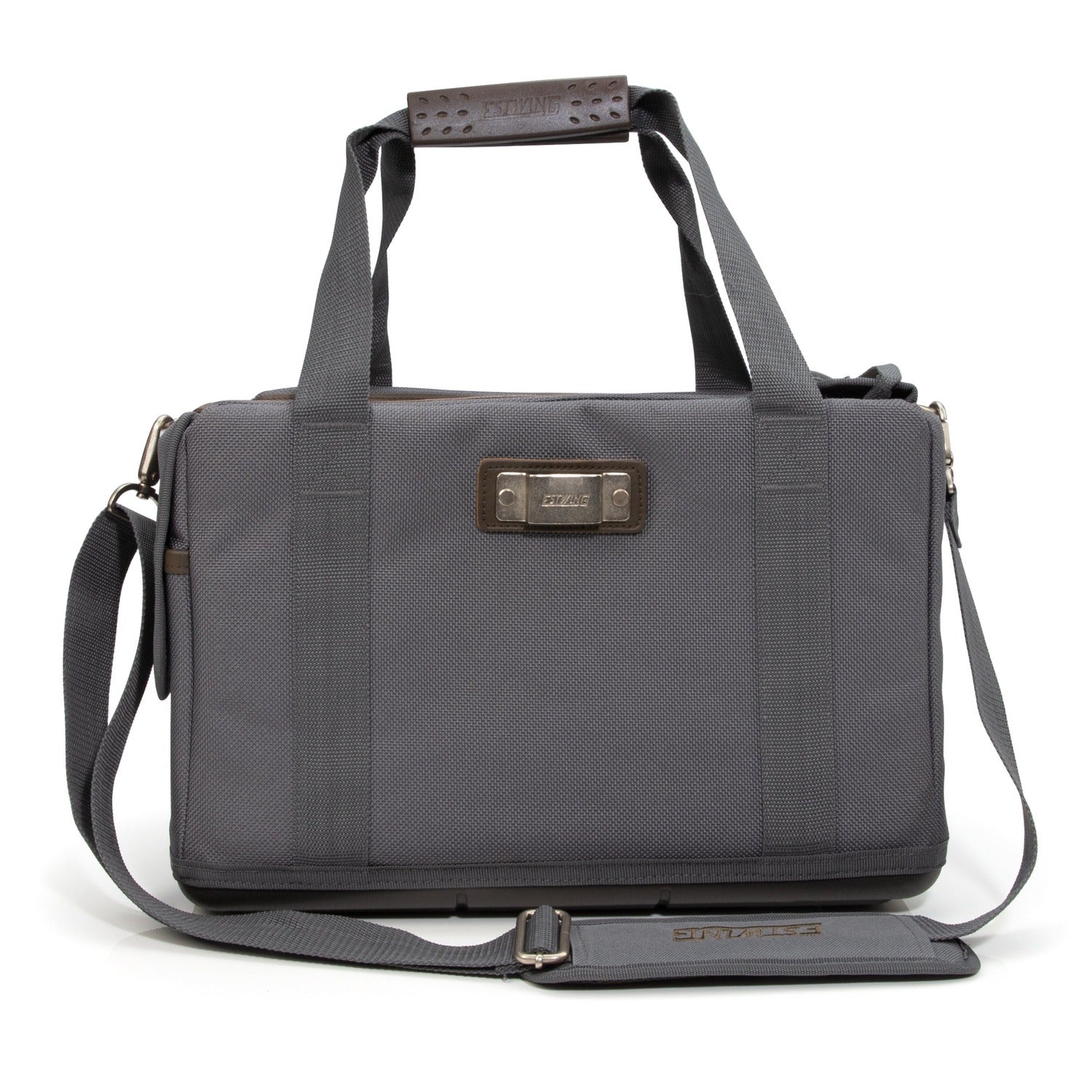 This easily portable 16-inch Estwing carpenter's tool bag brings heavy-duty tool organization and storage to your work site. This bag is made with rugged 1800D polyester fabric that can hold up to long, hard use on the most demanding job sites. The outside of the bag sports 5 pockets, a rivet secured steel tape measure clip, and a tension held hammer holder to provide additional exterior storage. Opening the lid flap reveals 4 zipper secured mesh pockets along its underside that are great for storing fasteners, small parts, and tools while remaining easily visible. The main compartment is completely open, able to hold large or bulky tools with ease. Lining the inside are a total of 8 elastic held pockets to help organize stored tools and items. The interior floor of the bag is made from a single piece of puncture resistant polyethylene (PE) to keep saw blades and other sharp tools from piercing through. The outside bottom of the bag also features a hard plastic boot that provides a stable base when the bag is set down while also adding durability and moisture resistance. The included padded shoulder strap features durable steel hardware and makes a convenient way to transport tools to and from the job site.