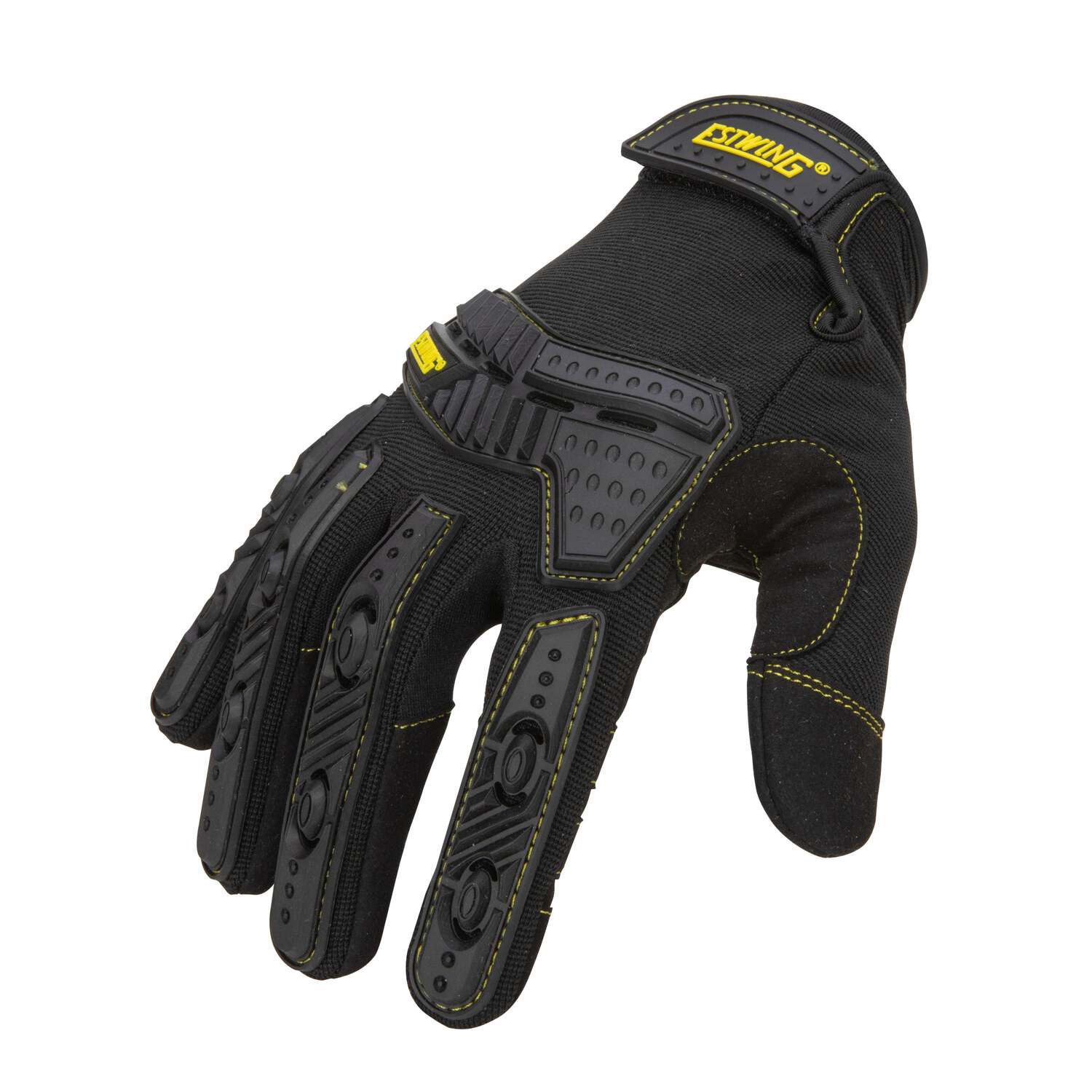 The only thing better than a good tool are the hands that hold it. Protect those hands with a pair of Estwing Impact Breaker work gloves. Designed to the same exacting standards as our hammers and striking tools, these gloves are made using high quality materials to provide you with the best in comfort and protection. The outer shell of these gloves is made from a polyester fabric blend that allows it to stretch in any direction to allow for added comfort, dexterity, and breathability. To this shell is attached multiple lengths of TPR synthetic rubber padding to protect the knuckles and backs of the fingers from injury in the case of knocks, bumps, and impacts. The shining star of the glove is the anti-vibration palm pad overlay. Every hammer swing, every tool strike, and every oscillation of a power tool generates vibrations that can pass into your hands and result in tingling, pain and other problems. This pad works to absorb those vibrations and prevent that harm. The adjustable wrist features a hook-and-loop closure that ensures a snug and comfortable fit. Perfect for jobs and tasks that require long lasting durability and protection from minor impacts like construction, road maintenance, farming, home improvement, automotive repair and DIY projects around the house or in the workshop.