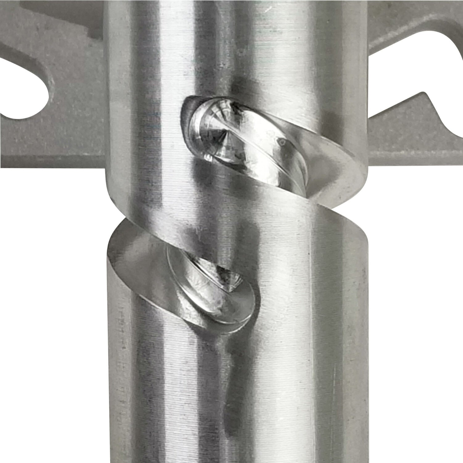 This double tilt action bracket controls the pitch of the blade with a one-to-one turning ratio of handle to blade. Turning the handle eliminates the need for bending and lifting when moving tools across fresh concrete. The bracket is made of rugged, yet lightweight aluminum for durability. The patented design (U.S. Patent #6,827,523 B2) ensures smooth movements. A machine engineered adjustment channel is made to precise specifications for this top-of-the-line bracket. Bronze and stainless steel components on the bracket are housed internally to protect them from concrete build-up. Dual grease fittings flush out dirt and debris while lubricating the bracket. Use Molybdenum grease after each use to keep the bracket running at peak performance. Use with 1-3/8" and 1-3/4" button bull float handles, sold separately. Fits on all 2- or 4-hole bull floats and channel floats.