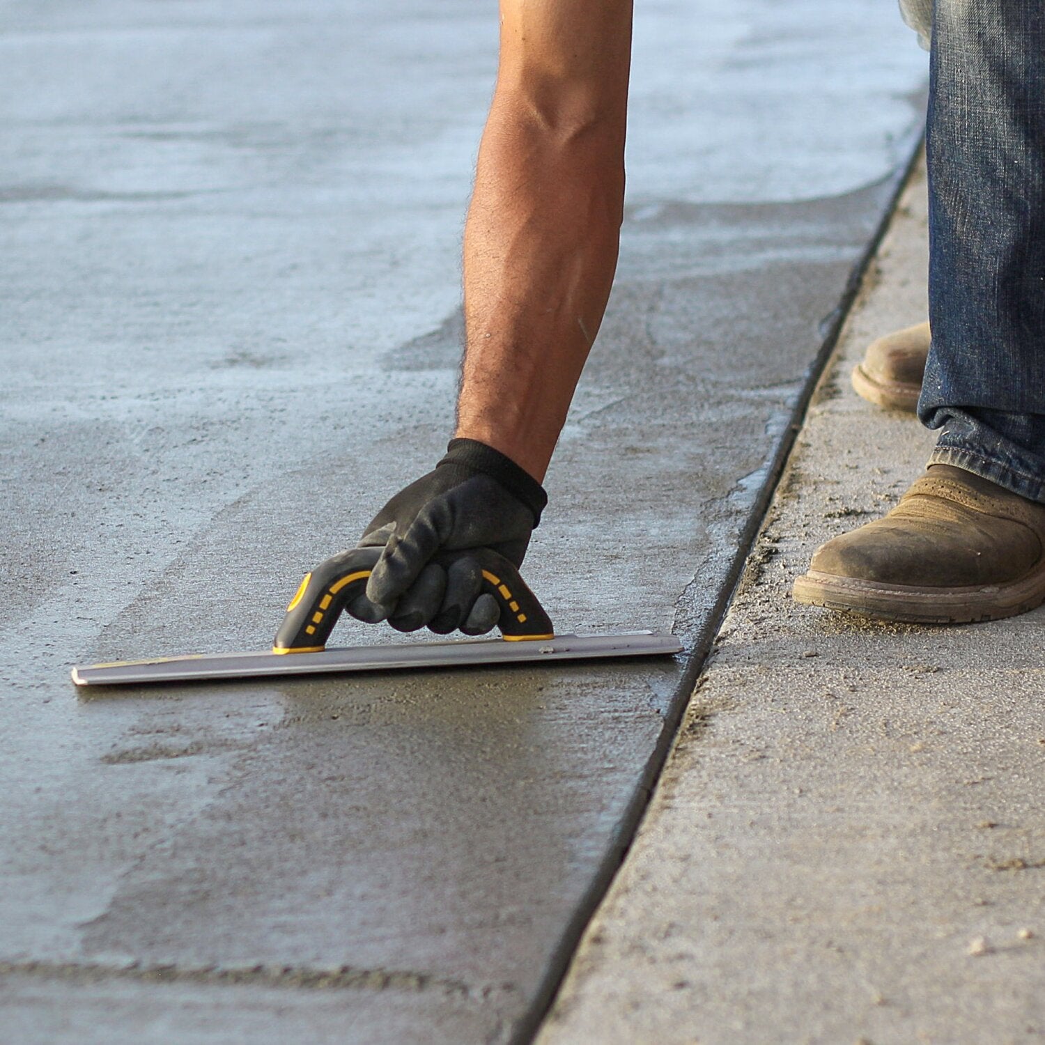 This hand float is designed for optimal floating action on cement. The 11-1/2" blade made from ultra-light and ultra-strong GatorLoy, a unique aluminum alloy. The uniquely short blade is great for getting in tight spots and touch-ups. The 3" wide blade has square ends that allow the user to float along forms and into corners with rounded corners to minimize gouging. The durable blade smooths and levels concrete before finishing. Use this float to open up the pores on the surface to allow for proper evaporation. The smooth sandblasted finish and broken-in edges create a float that is ready to use. This Gator Tools hand float is complete with a Ultra Grip handle. The handle is designed with ample knuckle clearance with a soft grip finish for comfort, yet a firm grip. The black handle with yellow highlights is easy to spot on the jobsite.