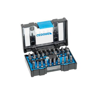 Phillips: #1,#2 and #3 Slotted: 4.5 mm, 5.5 mm and 6.5 mm Pozidriv: #1, #2 and #3 Hex Metric: 3.0 mm, 4.0 mm and 5.0 mm Torx: T10, T15, T20, T25, T30 and T40