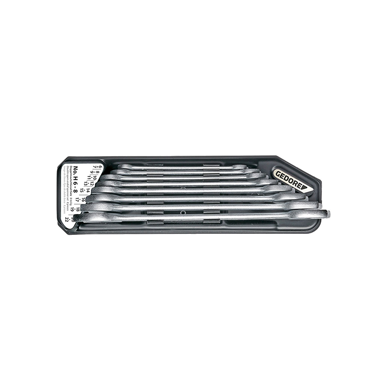 GEDORE 6079400 Double Open-Ended Wrench Set with Holder, 6-22mm Width (8 Pieces)