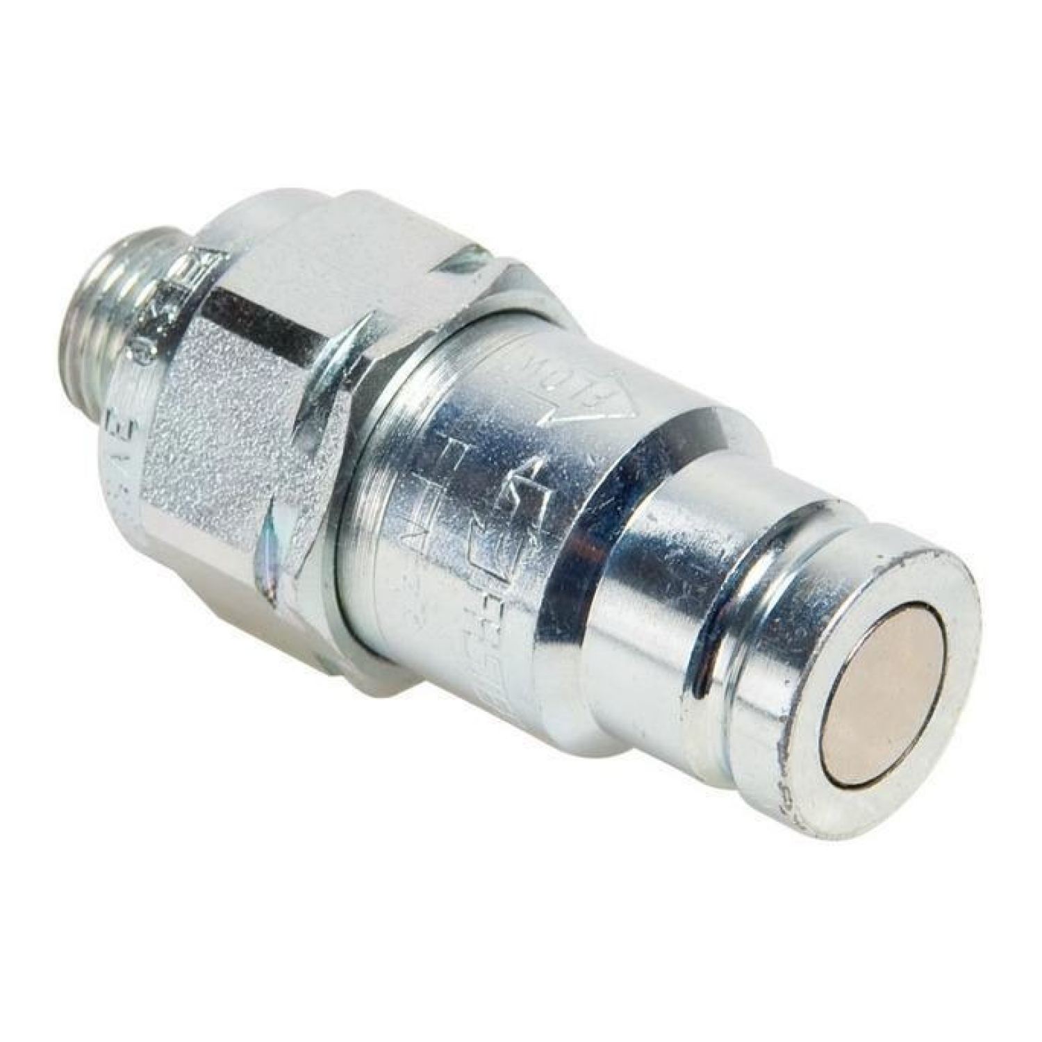 Greenlee 54922 is a 3/8 inch male quick coupler with a 9/16-18 SAE o-ring and external threads. This can be used on hydraulic tools with a 3,000 PSI maximum operating pressure. The coupler can be installed on the tool to attach it to a hose reel or whip hose.
