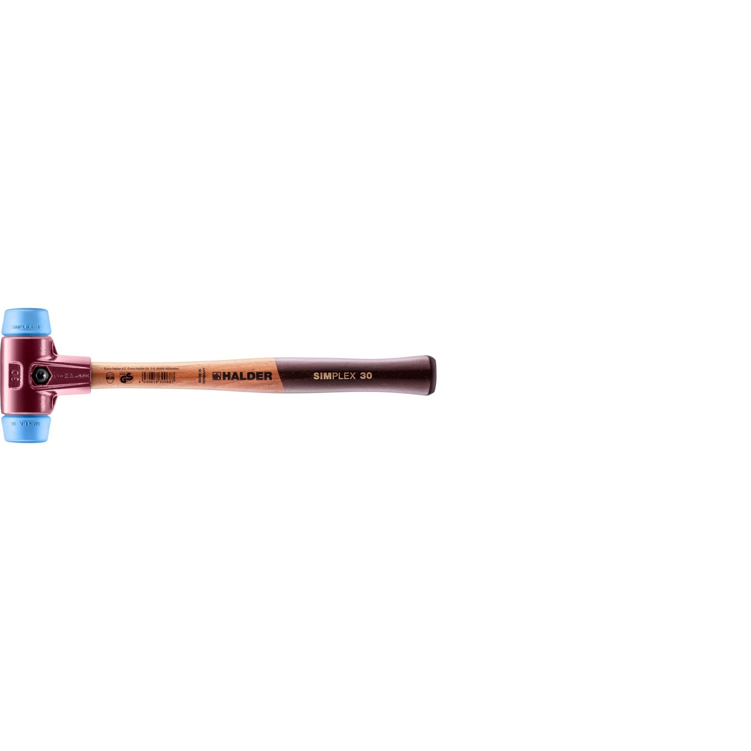 This SIMPLEX series 3001 is equipped with the blue TPE-soft insert (series 3201) on either side. This insert is the softest insert of the SIMPLEX line and offers strong impact cushioning for work requiring a light touch. Unlike conventional rubber mallets, it does not leave behind any undesired black marring. Made of cast iron, the housing comes with an integrated handle protection sleeve that provides for a high level of break resistance. Damping vibrations and shaped ergonomically, the high-quality wooden handle has a double coat of varnish in the grip area and is thus resistant to dirt. In line with the smart SIMPLEX principle, all components are replaceable and can be retrofitted. This translates to savings in both money and resources. This version is available in sizes ranging from D30mm to D80mm. The D80mm version is also available with an extra short handle (3001.082).