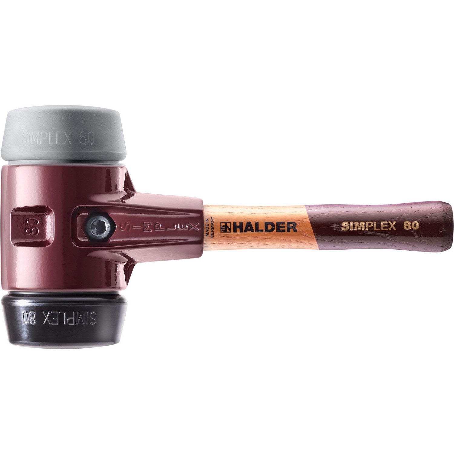 Halder 3023.082 Simplex Mallet with Black Rubber and Grey Rubber (non-marring) Inserts / Cast Iron Housing and Wood Handle / SHORT HANDLE