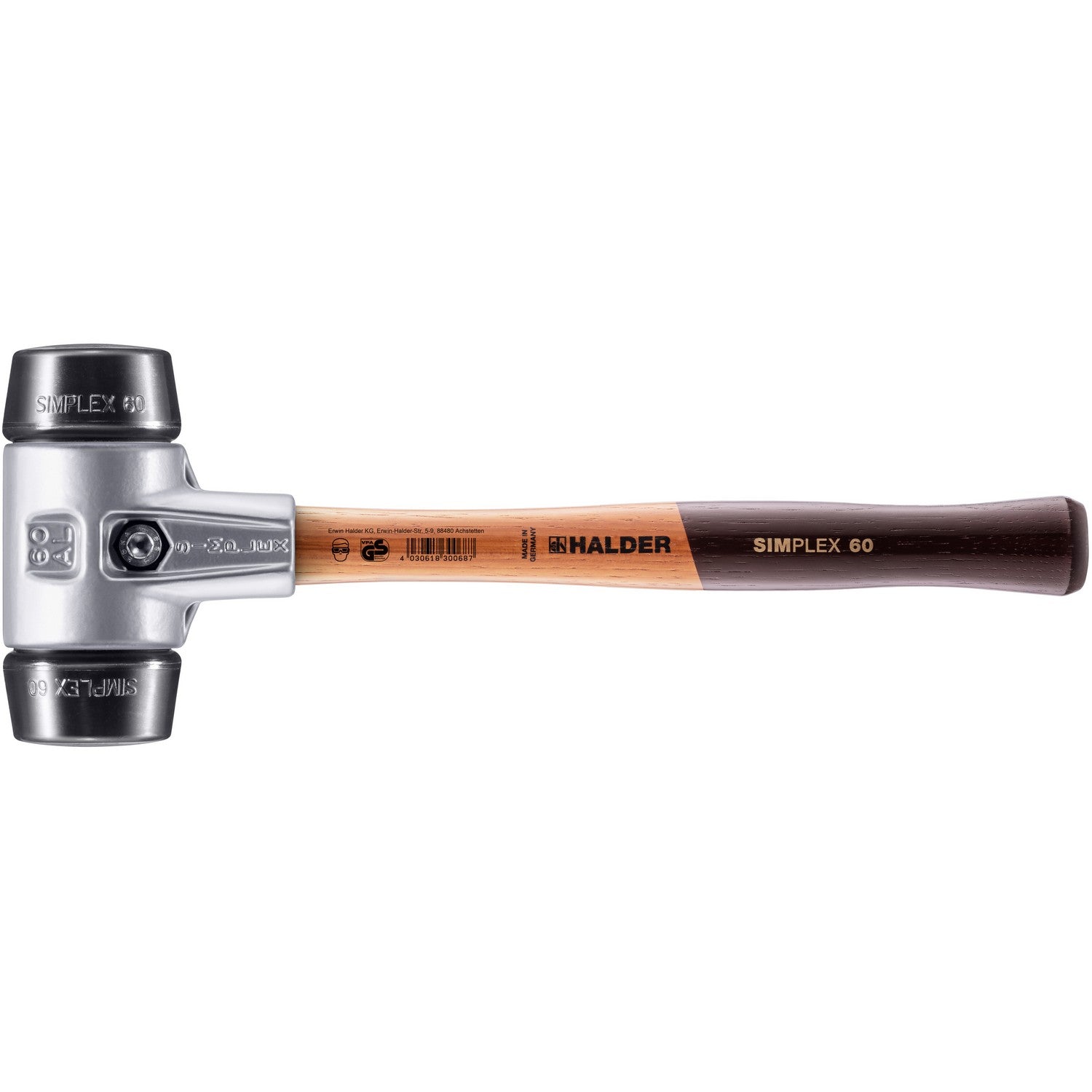 Halder 3102.060 Simplex Mallet with Black Rubber Inserts Lightweight Aluminum Housing and Wood Handle