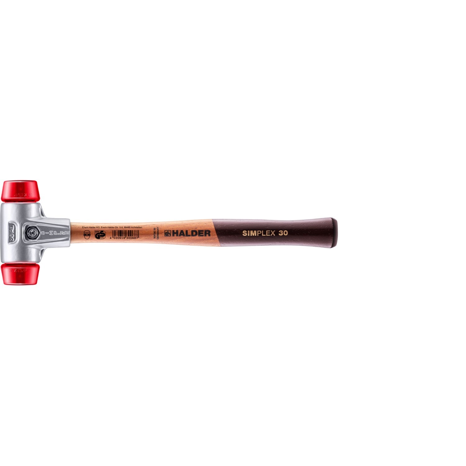 Halder 3106.030 Simplex Mallet with Red Acetate Plastic Inserts Lightweight Aluminum Housing and Wood Handle