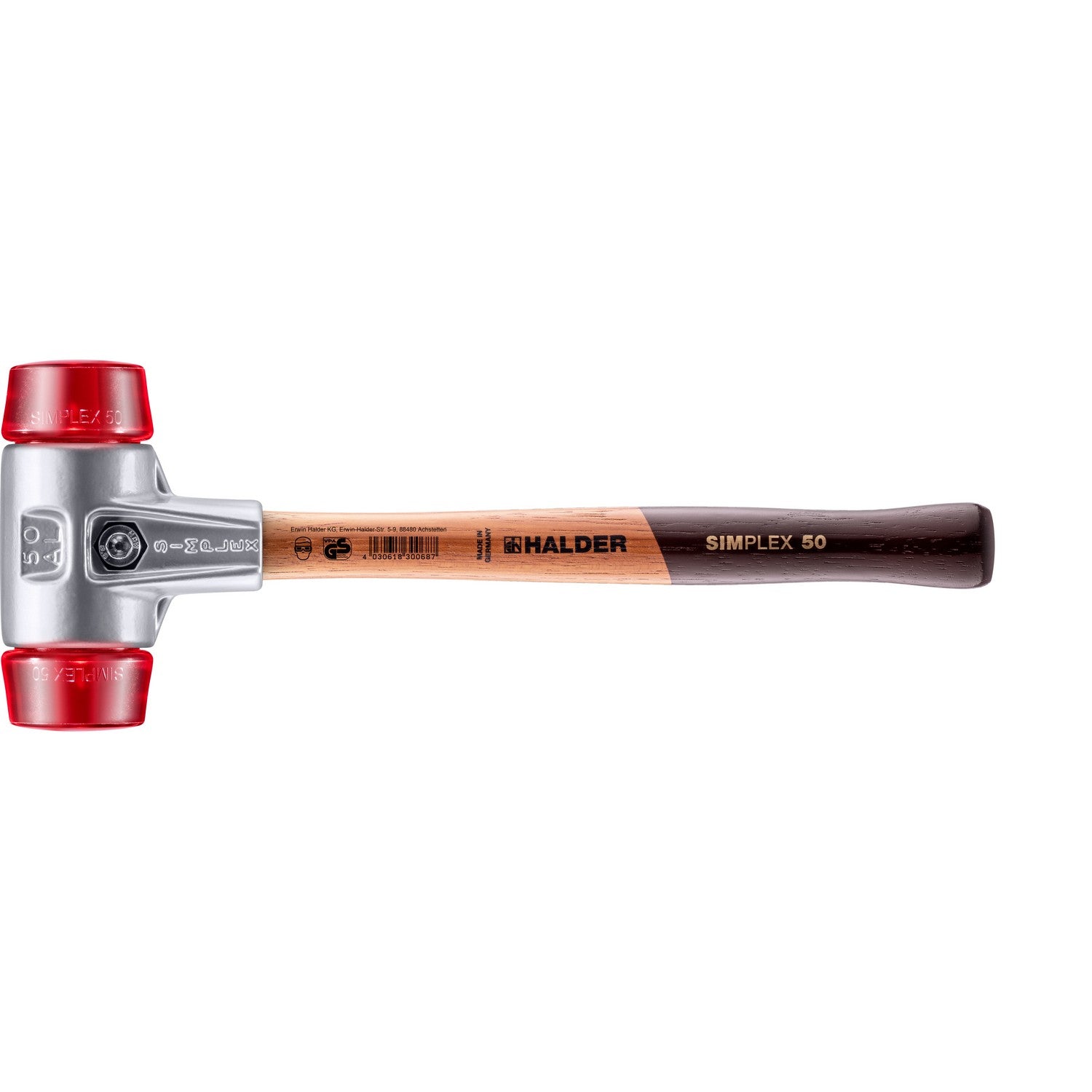 Halder 3106.050 Simplex Mallet with Red Acetate Plastic Inserts Lightweight Aluminum Housing and Wood Handle