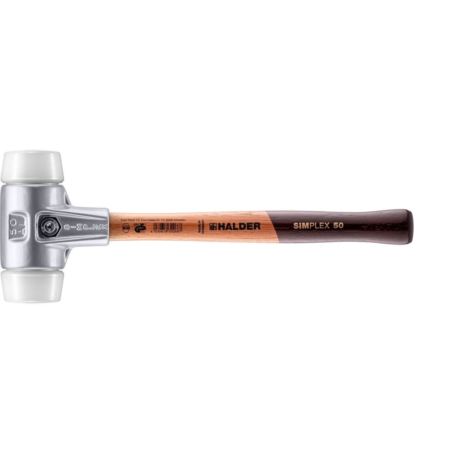 Halder 3107.050 Simplex Mallet with Superplastic Inserts Lightweight Aluminum Housing and Wood Handle