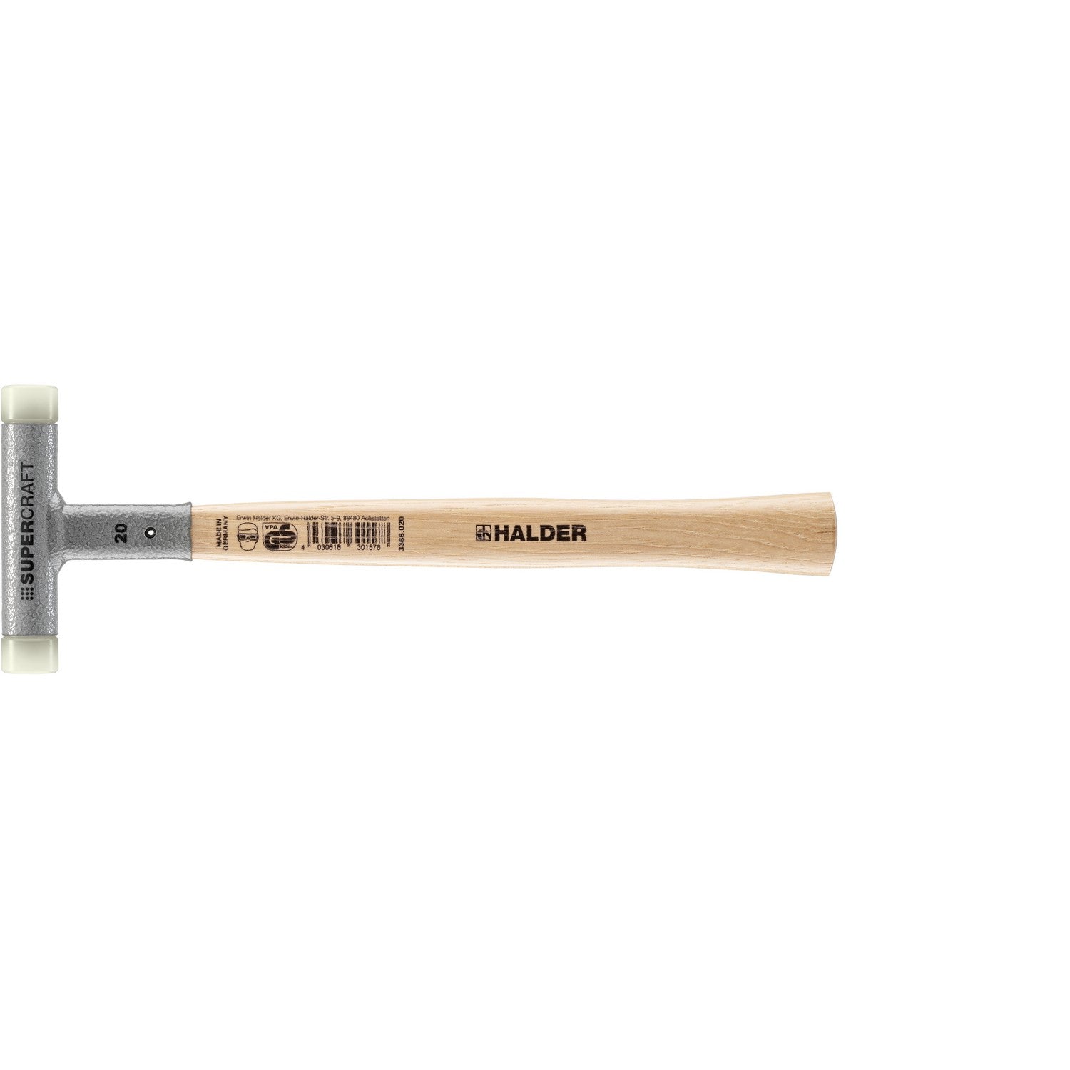 Halder 3366.020 Supercraft Dead Blow, Non-Rebounding Hammer with Nylon Face Inserts Steel Housing and Hickory Handle