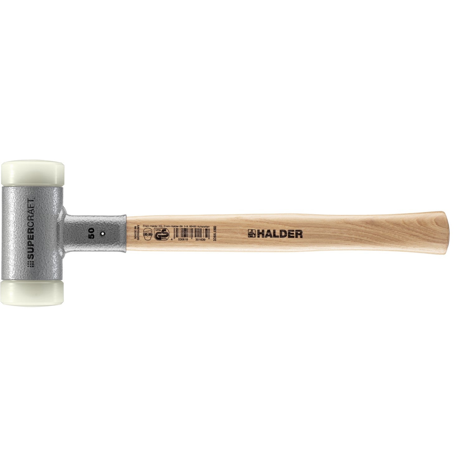 Halder 3366.050 Supercraft Dead Blow, Non-Rebounding Hammer with Nylon Face Inserts Steel Housing and Hickory Handle