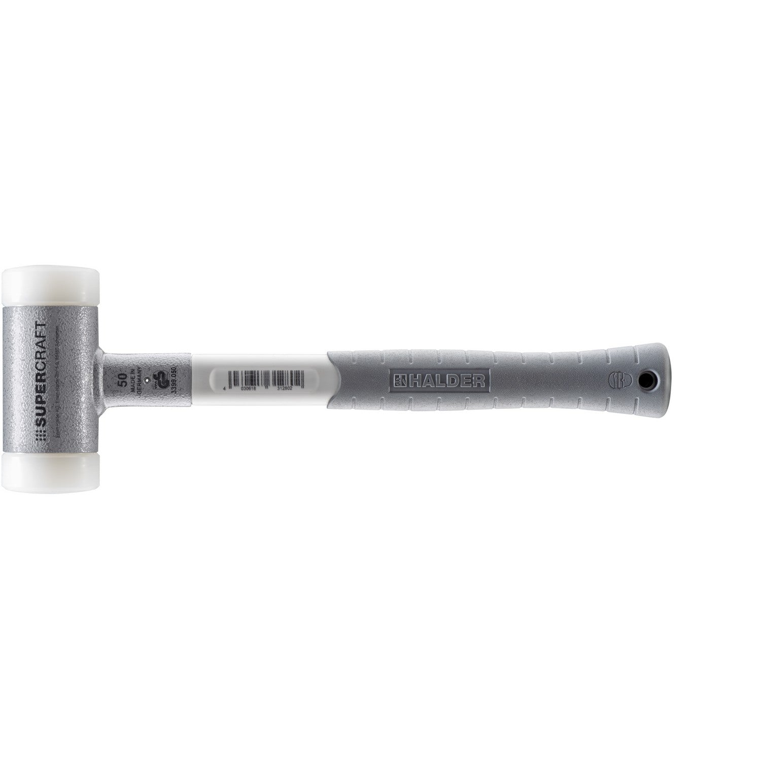 Halder 3399.050 Supercraft Dead Blow, Non-Rebounding Hammer with Nylon Face Inserts 3 Component Rubberized Fiberglass Handle