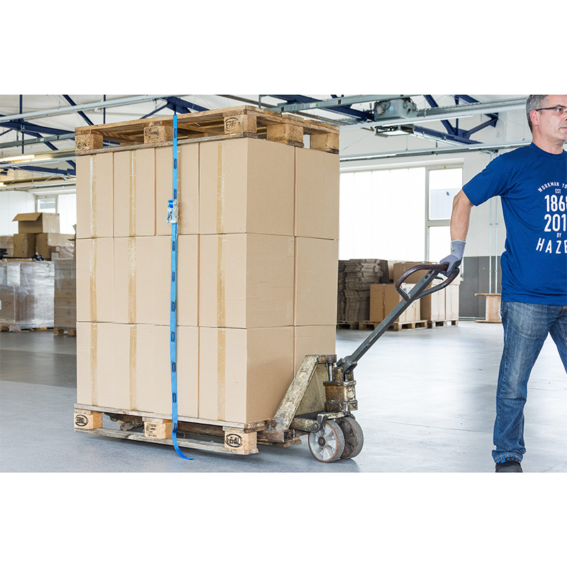 - Lashing capacity / strapping: LC (strap webbing elongation in %) 1,000 daN in the strapping