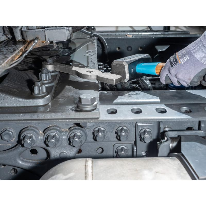 Optimized special profile for damage-free attachment of the flat-head lightweight nuts. Special application in case of lack of space due to design and very low vehicle body. For the operation of the lightweight nuts with special profile on the frame, fifth-wheel coupling, front carrier and vibration damper MERCEDES-BENZ on the Actros ∙ Antos ∙ Arocs model year 2016 →