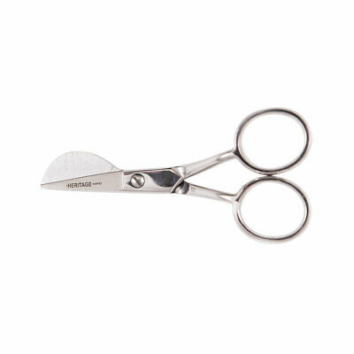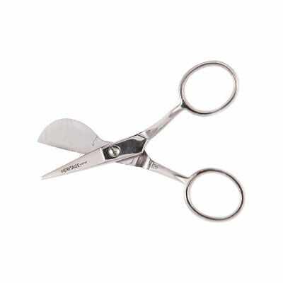 Heritage - Mini Applique Scissor. This is an applique scissor made exclusively by Heritage. The scissors small size allows the user to cut into small areas where precise applique trim work is needed. Tool comes with soft, removable finger inserts.