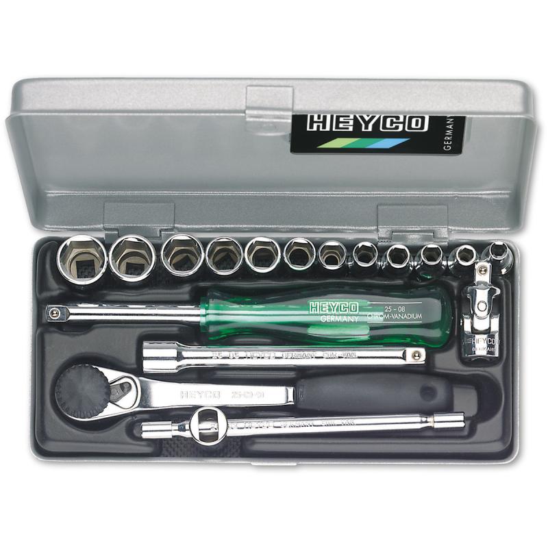 Heyco 00027301083 Metric 6 Point 1/4" Drive Socket Set, 17 Pieces