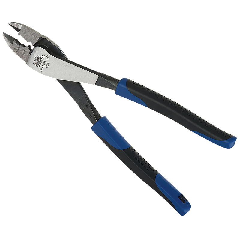 The IDEAL Made in the U.S.A. tool line uses forged-steel construction, which provides extra strength and hardness without sacrificing flexibility. Cuts, crimps and splices 10-22 AWG wires for insulated and non-insulated crimp connectors with less force due to a high-leverage pivot.