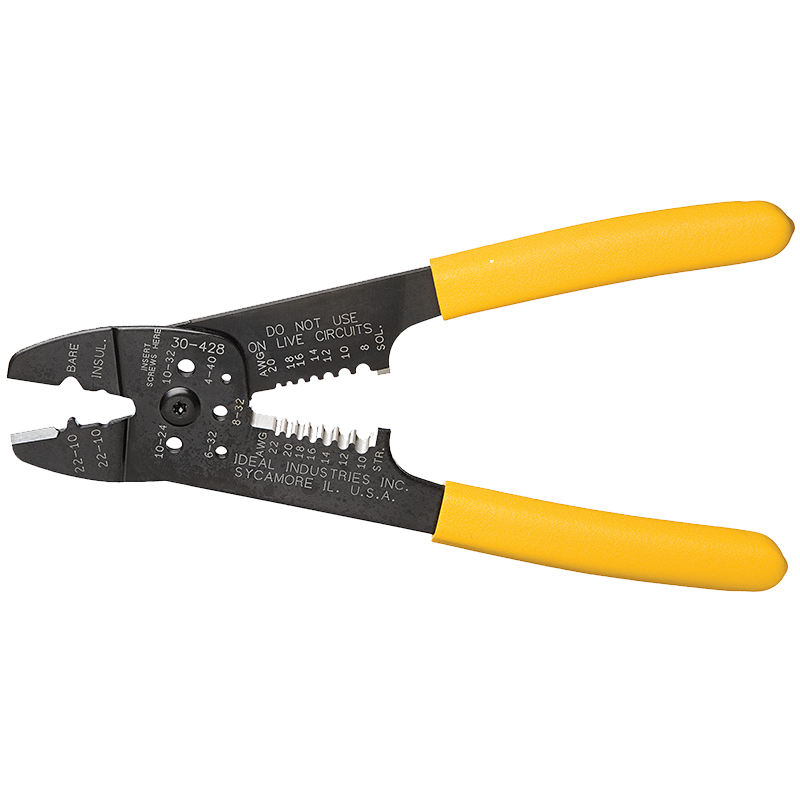 A combination of convenient and versatile make this tool a must have in the bag. Cutting, stripping, crimping, and reforming threads can all be done with this single tool. Constructed with precision-ground stripping holes and knife-to-anvil cutting blades.