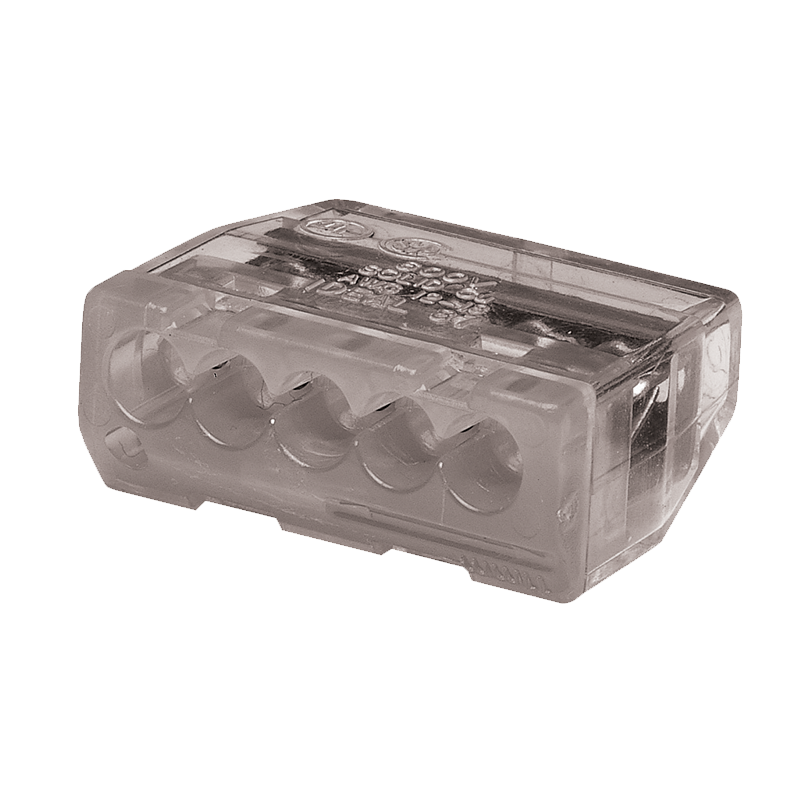 The color-coded shell allows for quick identification of port configuration while the clear polycarbonate housing allows for visual verification of every connection. The ergonomic design is easier to grip which means more comfortable push-in connections. The compact size makes for easy installations in even the tightest spots or shallow boxes, and the tough, flame-retardant shell stands up to the harshest environments.