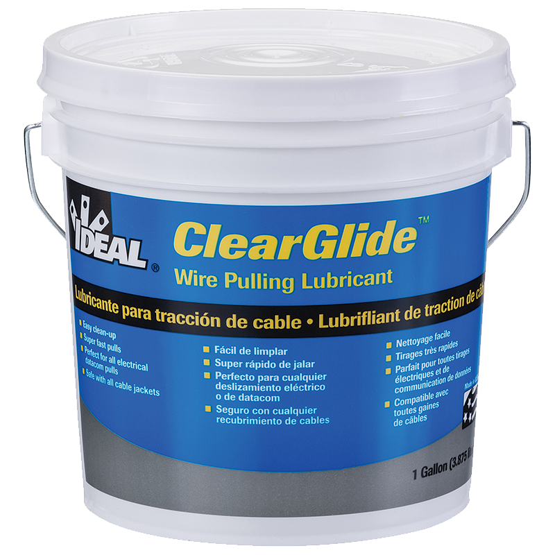 IDEAL ClearGlide™ Wire pulling lubricant is a polymer-based formula well suited for all electrical and datacom applications, and safe to use with all cable types. It is clear and colorless, and suitable for indoor as well as outdoor applications. This formula provides quick and easy clean up, and extraordinary lubricity for super-fast pulls. Its controlled evaporation rate is ideal for shorter runs. It remains stable over wide temperature ranges from 32°F to 180°F (0°C to 82°C) and dries to a semi-fluid film that won't clog conduit. It is convenient to apply by hand, brush, or pump, and is environmentally safe, non-toxic, non-flammable and non-corrosive for user safety. It comes in 1-qt squeeze bottle, 1-gallon bucket, 5-gallon bucket, and 55 gallon drum. Lubricant is UL listed.