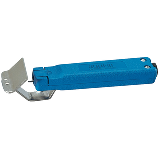 These tools are for quick and precise removal of insulation from round cables without nicks. Offering a unique lever and blade design allows ringing, and longitudinal slitting of cable jackets. Adjustable blade for different jacket thicknesses or cutting depth up to .125 inches. Comes with a spare blade in the handle.
