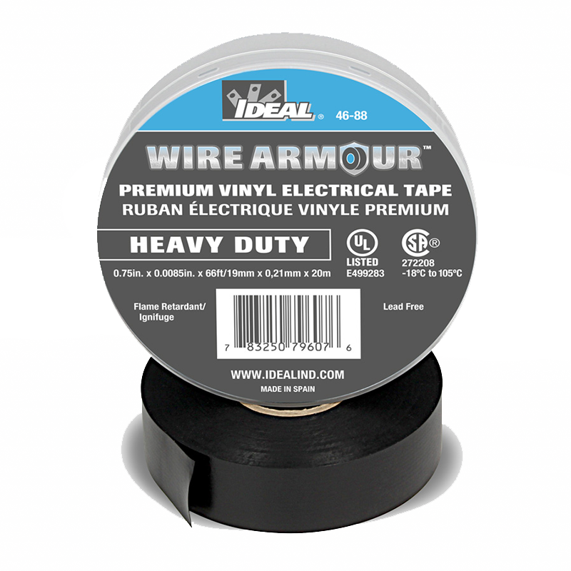 A 7 mil (0.18mm) all weather, professional grade, pressure sensitive vinyl tape which applies easily and gives excellent performance over a wide range of temperatures. Cold and weather resistant and flame retardant. It can be used as primary insulation for splices up to 600 volts. Use as protective outer jacket over splices and for all low temperature applications.