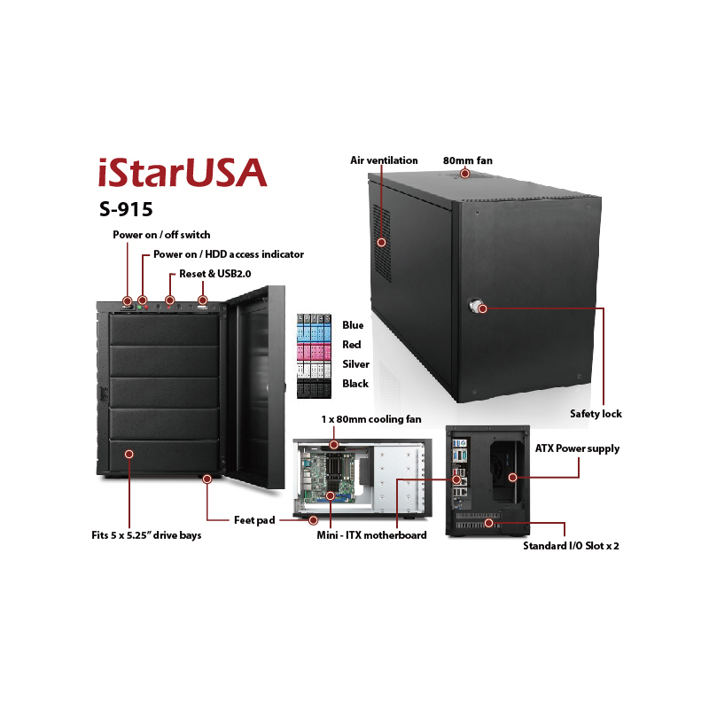 iStarUSA S-915 Compact Stylish 5x 5.25" Bay mini-ITX Tower