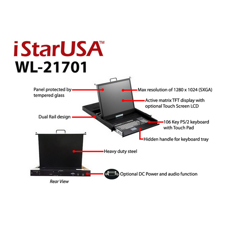 iStarUSA WL-21701 1U Rackmount 17" TFT LCD Keyboard Drawer
