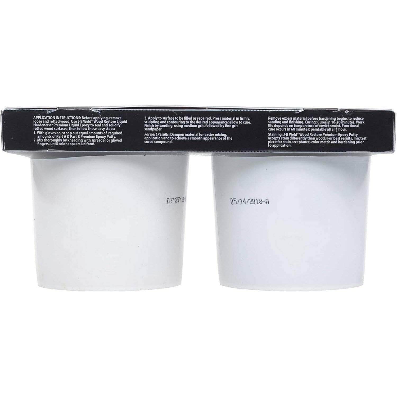J-B Weld Wood Restore Premium Epoxy Putty - Repair Compound is a hand mixable epoxy putty specially formulated to repair and rebuild wood quickly and easily. When applied it adds structural strength to areas of damaged or rotted wood. It can be used to fill, build, reinforce or bond wood surfaces. After mixing, it forms a polymer compound that cures to the same density as wood. It may be used for exterior or interior applications; contains no solvents; will not rot, shrink, crack or pull away. After 60 minutes, it can be sanded, tapped, machined, dripped, filed and painted.