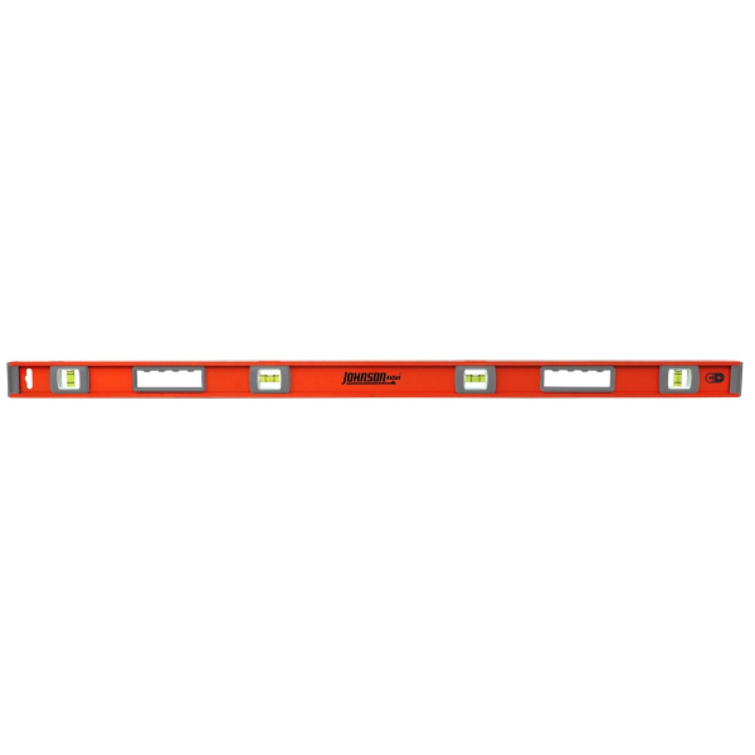 To make this level as easy to use as possible, the oversized 1/2" vials come equipped with Johnson's SurroundView® technology for maximum visibility along with a top read window allowing the user to stand over the work to view the vials. Not only are the vials themselves easy to read, but the level has more vials than competitive models in 48" and longer lengths, meaning the vials are always within eyeshot, even at awkward angles. Large comfortable rubberized hand grips provide a comfortable, sure grip every time. This level's strong magnetic edge provides hands-free use on ferrous metal surfaces.