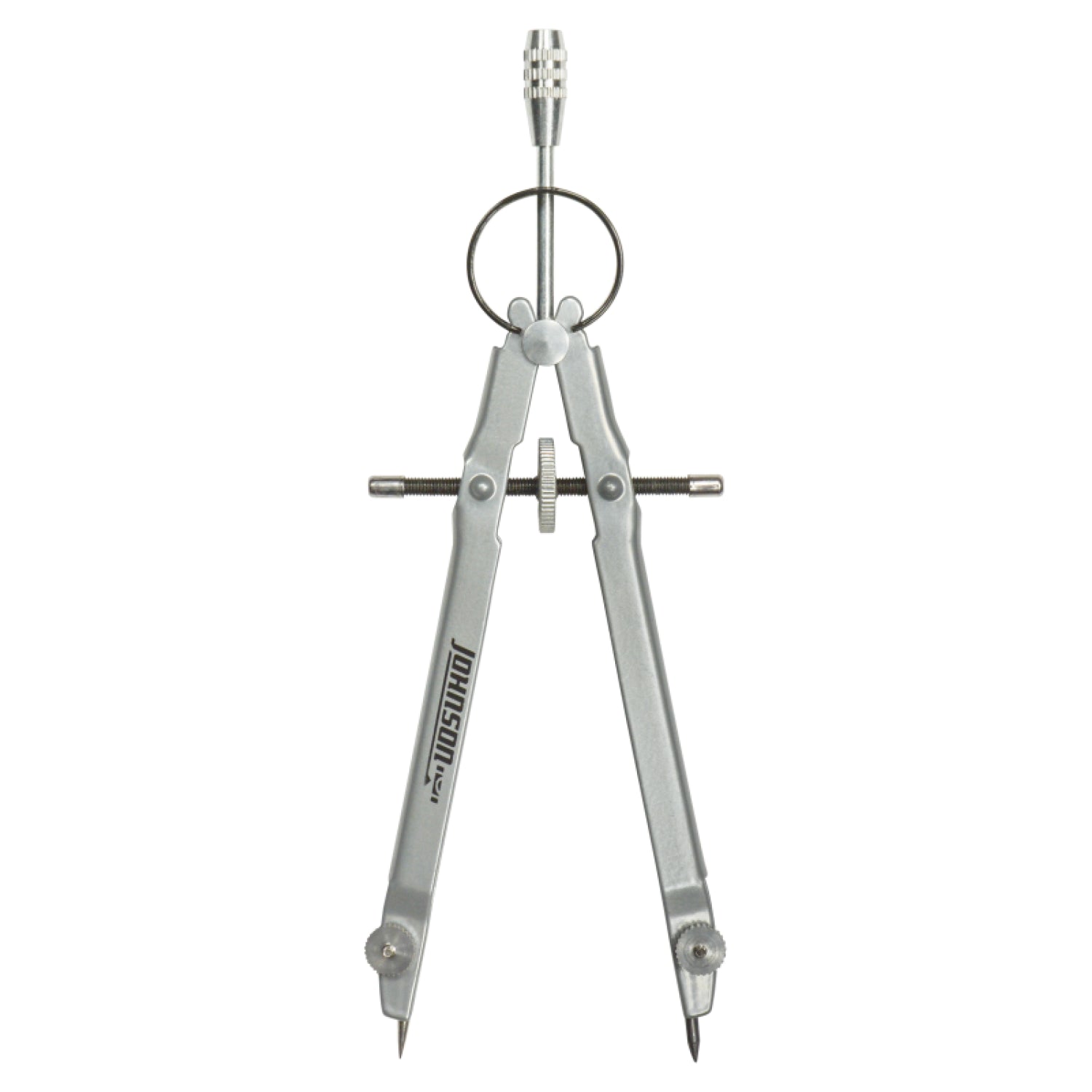 Johnson’s 9” drafting compass is ideal for scribing arcs and circles with the steel point producing consistent accurate markings. Easily adjust the legs for precision drawings and repeat measurements up to 9.5” diameter. Its durable all metal body with protective finish is resistant to rust and is built to withstand rough jobsites. The non-slip knurled spring head provides maximum control while adjusting legs to secured position. Comes with replacement lead and locking hardware for maximum efficiency.