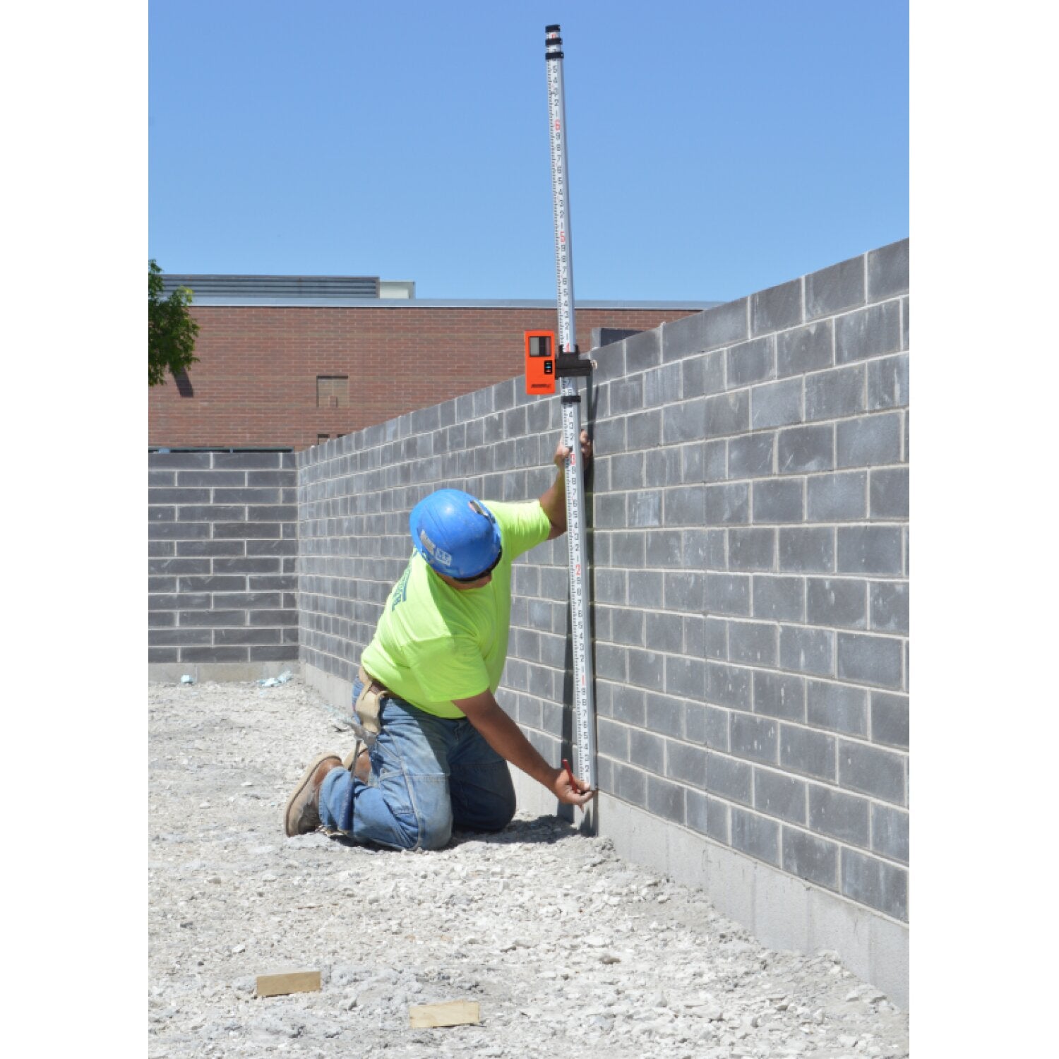 This laser detector pairs with red beam rotary lasers outdoors, in high ambient light conditions or whenever the human eye cannot see the laser beam. It quickly and accurately locates the laser signal for you. With a back-lit LCD display for easy reading and fine/coarse detection settings, the detector displays the information you need to get your leveling job done quickly and easily. Accuracy is never a problem thanks to the audible and visual indicators that allow for precise leveling. And the included clamp easily attaches the laser detector to grade rods for determining differences in elevation.