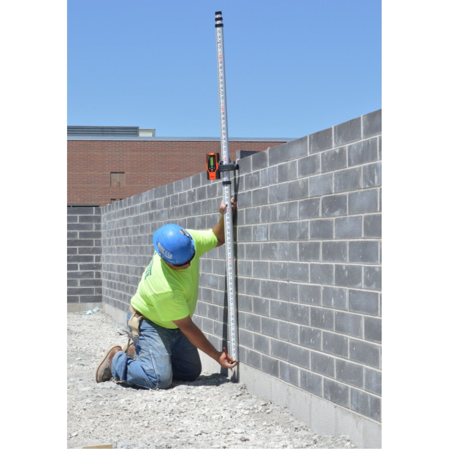 This two-sided laser detector is ideal for using red beam rotary lasers outdoors, in high ambient light conditions or whenever the human eye cannot see the laser beam by quickly and accurately locating the laser signals. Dual LCD displays ensure that your body never blocks the laser signal when operating the device and ensures you can see the reading no matter where you are. This detector features fine/coarse detection settings, and accuracy is never a problem thanks to the audible and visual indicators that allow for precise leveling. The included clamp easily attaches the laser detector to grade rods for determining differences in elevation.