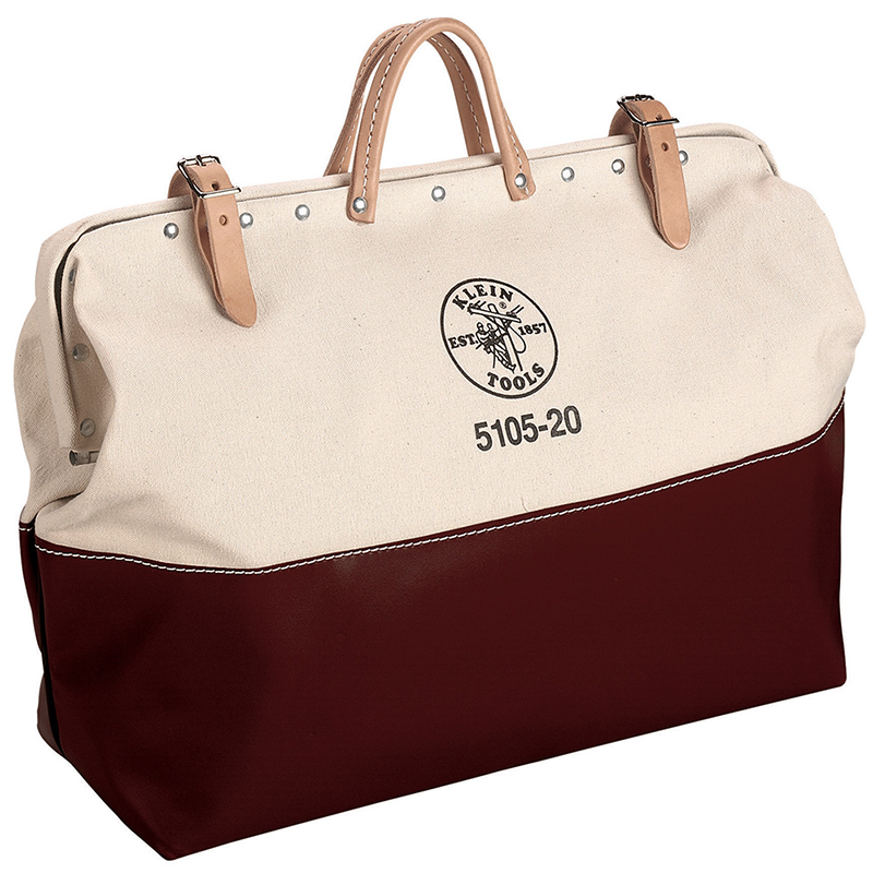 Klein Tools 5105-20 High-Bottom Canvas Tool Bag, 20-Inch,White/Tan