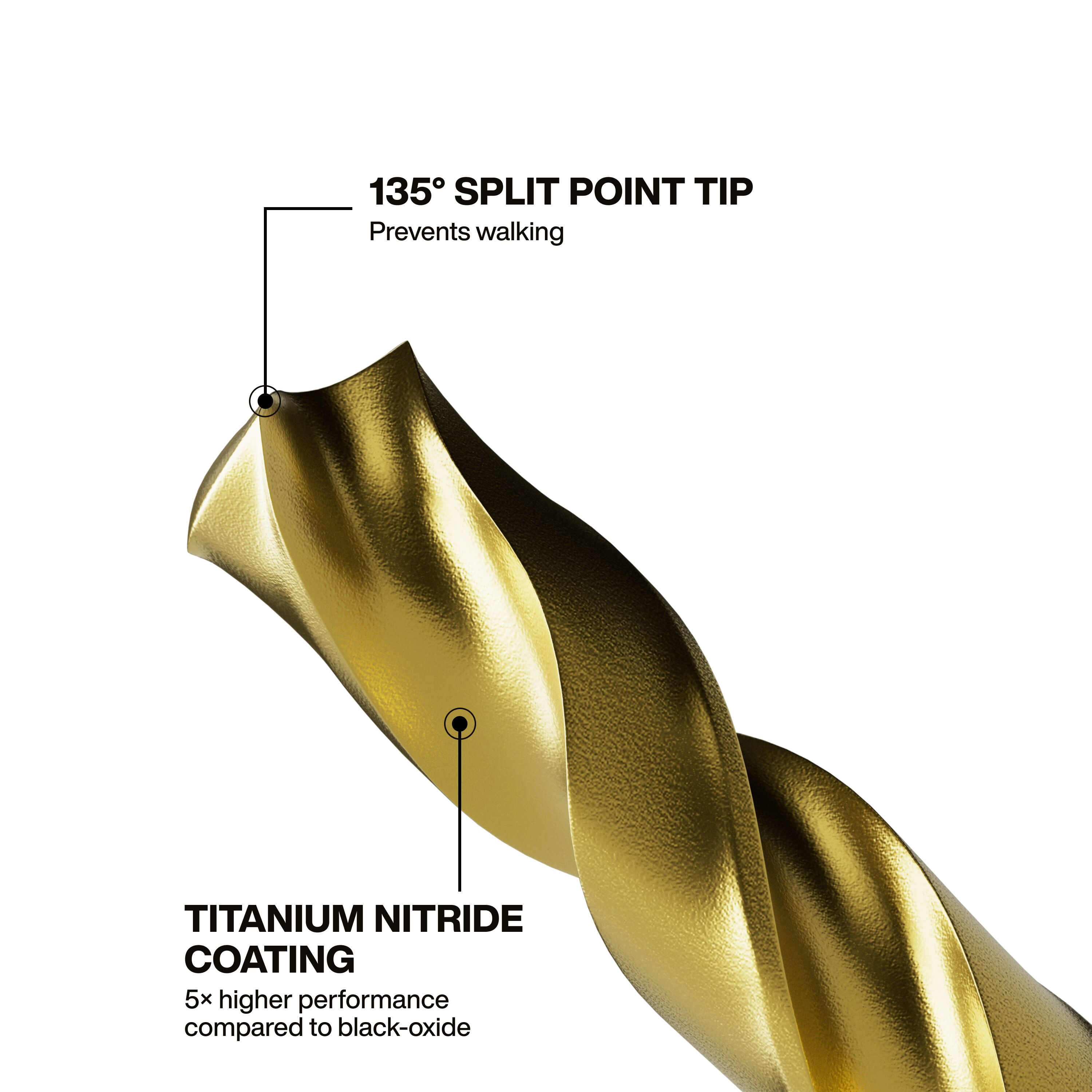 - Titanium Nitride Coating for improved performance, faster drilling, and longer bit life is ideal for general-purpose drilling materials like metal, wood, and plastic