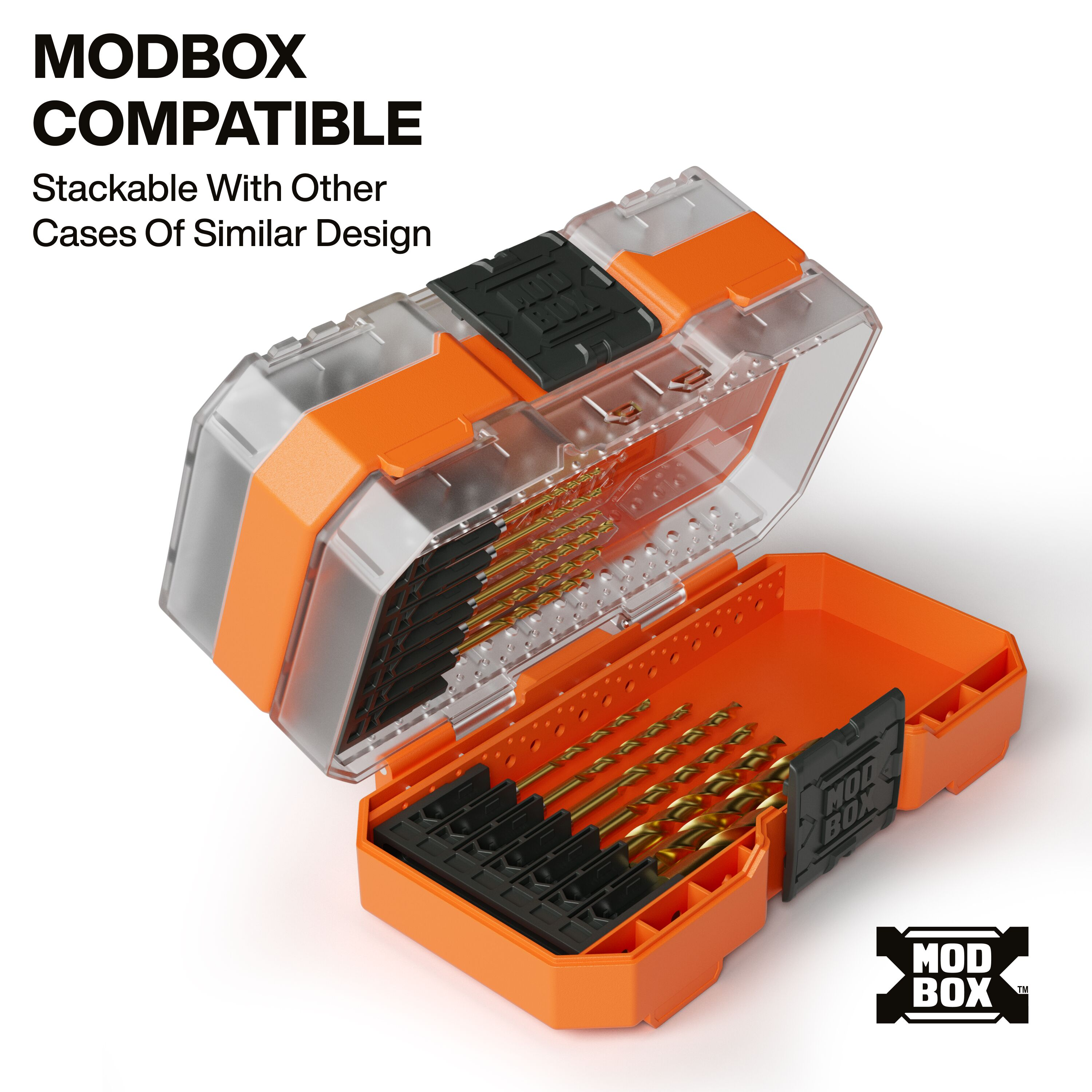 - Drill bit case is compatible with MODbox™ and stackable with other cases of similar design