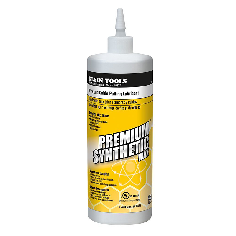 High performance lubricant for general electrical and utility applications. Compatible with most types of cable, including low-density polyethylene. Superior ''clingability'' to coat wires and conduit evenly. Learn more at https://www.kleintools.com/catalog/wire-and-cable-pulling-lubricant/premium-synthetic-wax-one-quart-squeeze-bottles-6-pack
