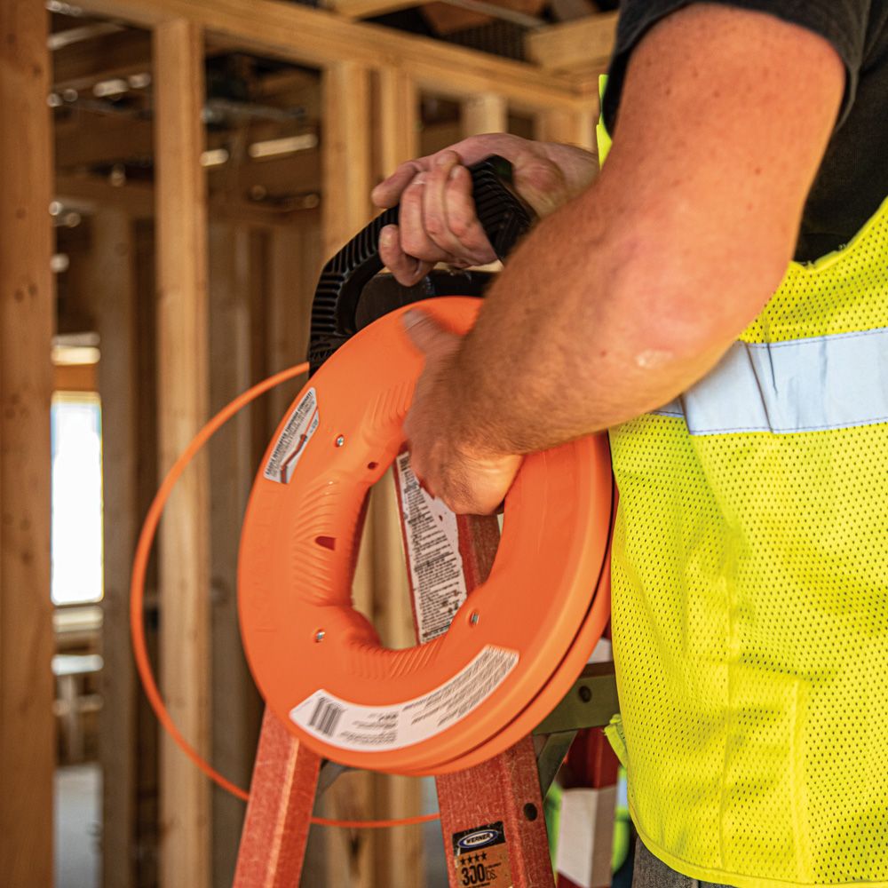 Klein asked electricians what would make pulling wire easier and more efficient for them. The results of those conversations was an updated design of the handle, the housing, and improved steel. Our new durable fish tapes have a smoother payout, easier rewind, and a handle that can be gripped whichever way works for you.