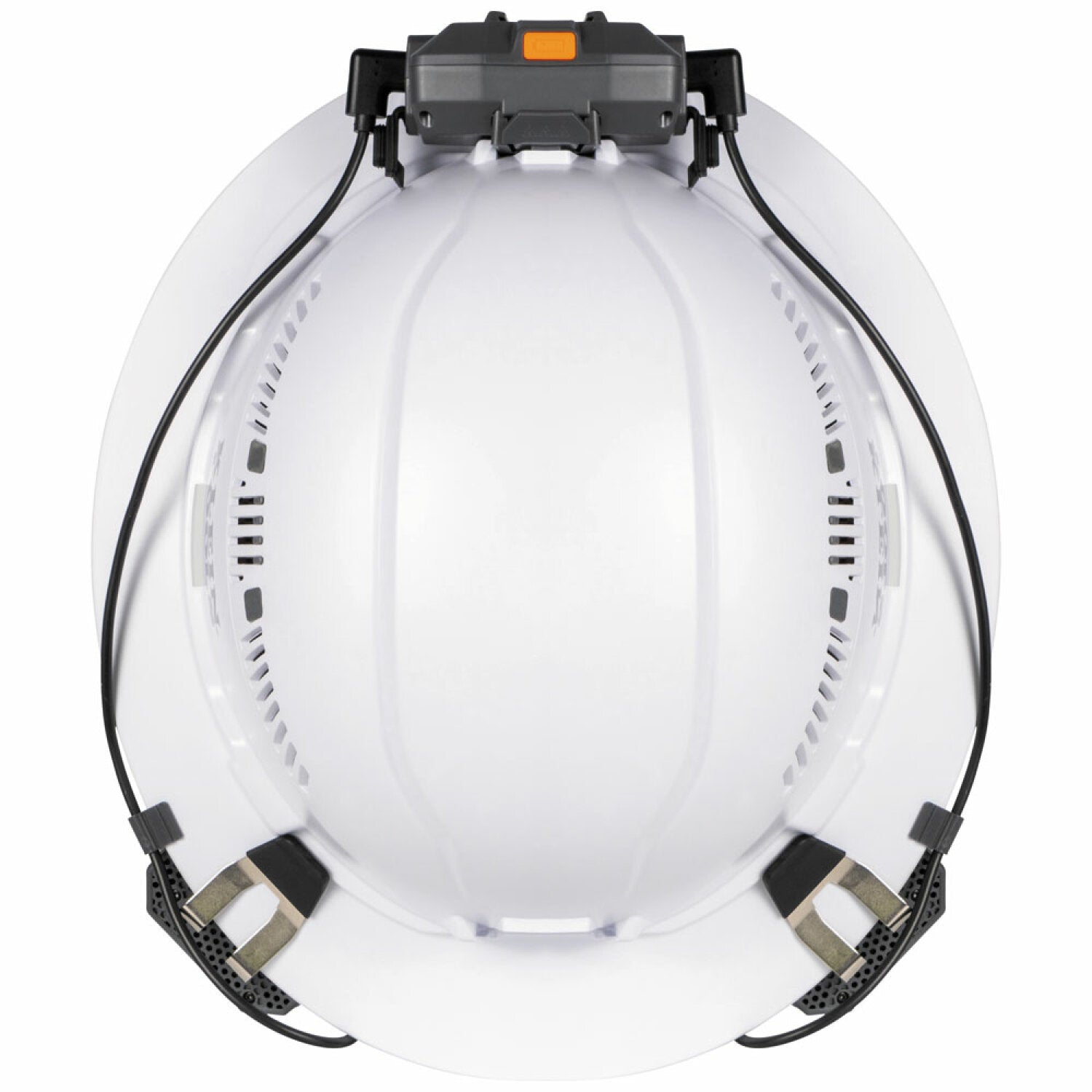 Wear the fan over any hardhat or safety helmet, always kept secure with adjustable strap